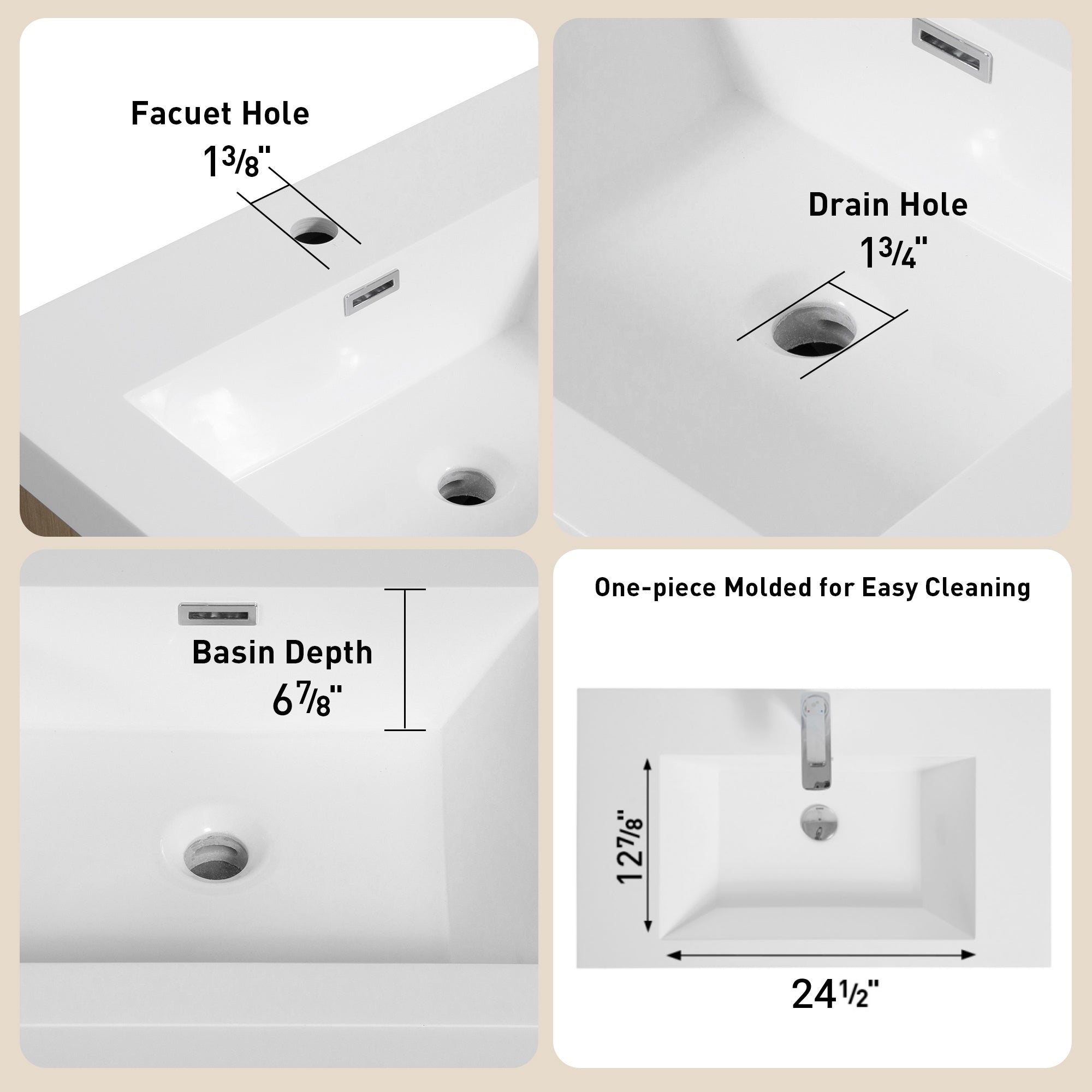 - Premium Stone Resin Countertop: It features a glossy white, one-piece sink made of high-quality materials that are easy to clean, resist yellowing, and have low water absorption.