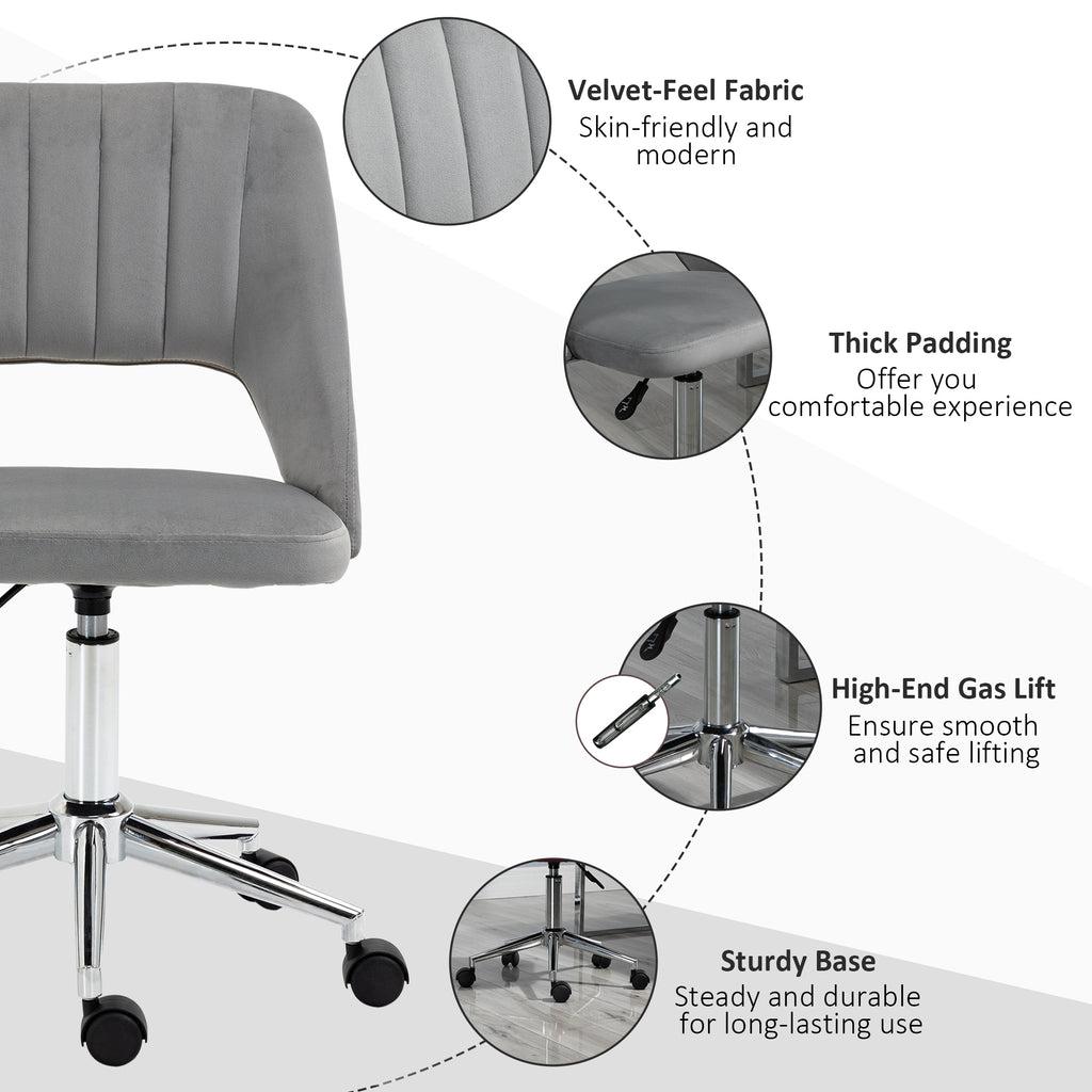 - Mid-Back Support: Designed to provide optimal support for your mid and lower back throughout the day, this mid-back desk chair ensures you can work comfortably for hours. With breathable, open back design, our vanity chair on wheels keeps you cool and comfortable.