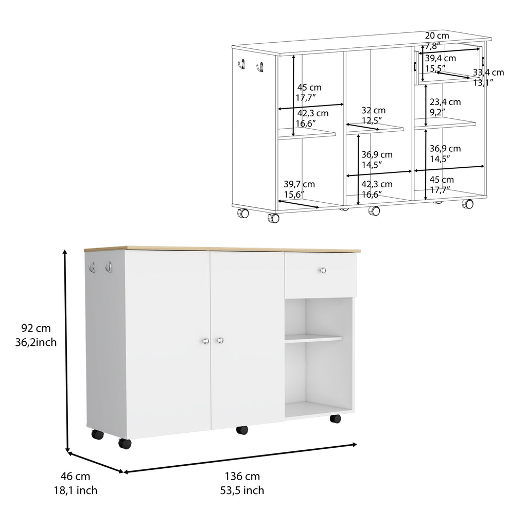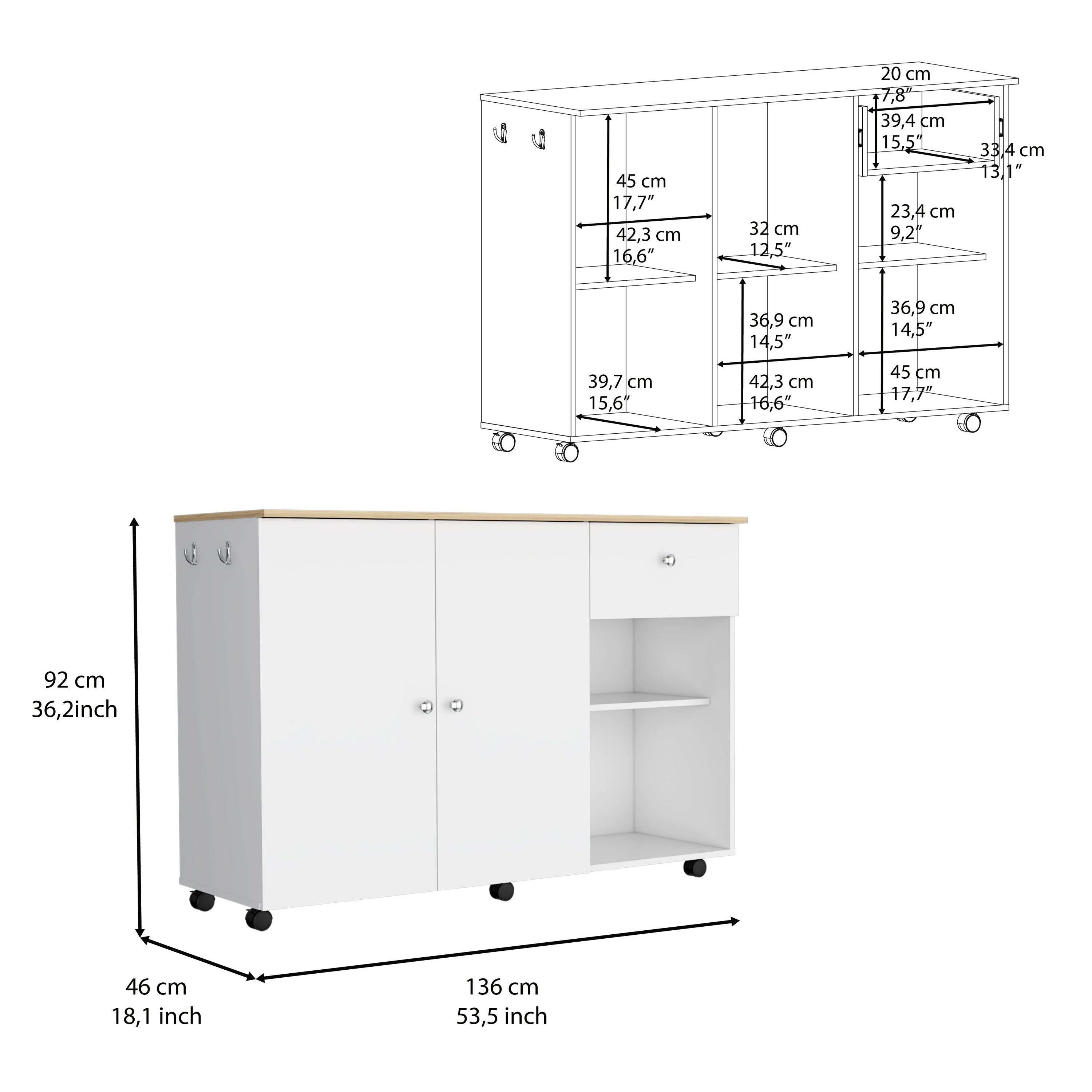 - Long and narrow countertop surface (53 W x 18 D) is perfect for any space