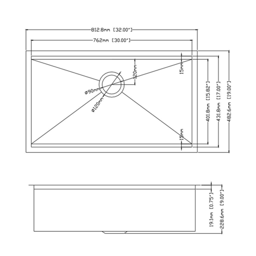- Complete Water Draining: The design of single bowl kitchen sinks sloping bottom and X grooves make water flow into the drain immediately, no need to remove it by hand. 3.5 inch sink drain opening fits standard garbage disposal unit in the US.
