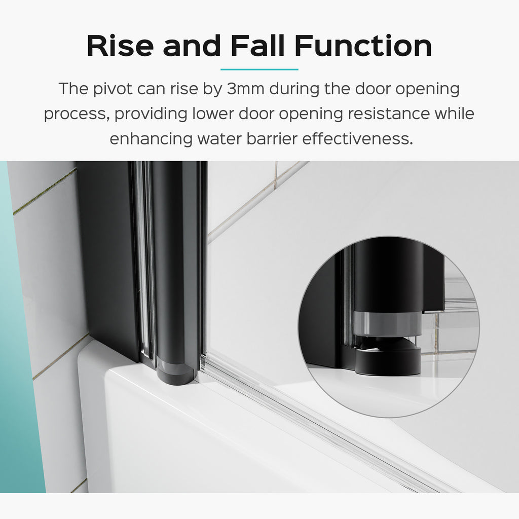 - FRAMELESS BI-FOLD PIVOTING SYSTEM: This shower tub door is installed to the wall, the door panel can fold inward 90 degrees, double folding design Reduce the space footprint of the glass panel. As well as, this bathtub door can be installed with left side opening or right side opening based on customer's preference, support reversible installation, flexible and comfortable.