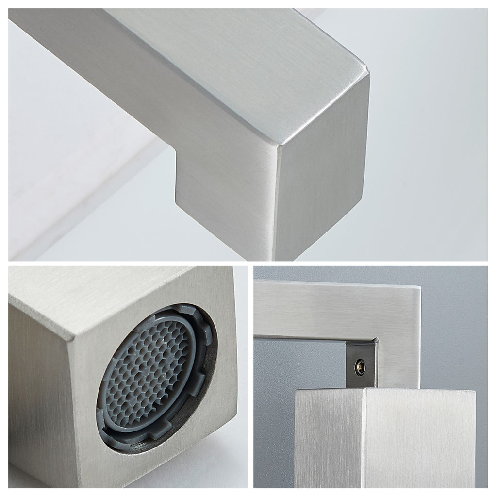- [Premium Grade Material] This centerset bathroom faucet for the vanity sink is made of high exquisite 304 stainless steel and Lead-Free Waterway. Stainless steel and spot-resistant finish can resistant rust and stain, is more durable and not easy to rust and corrosion.