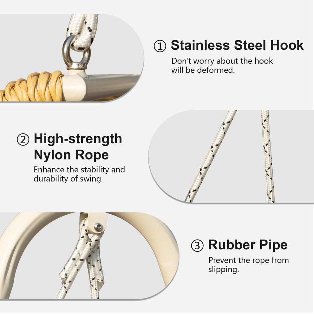 - Secure Hanging System-- Equipped with sturdy nylon ropes and alloy steel hooks, this outdoor hammock chair supports weights up to 750 lbs, providing a safe and stable outdoor experience without tipping or rocking.
