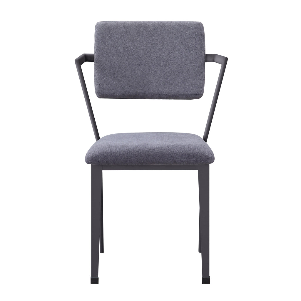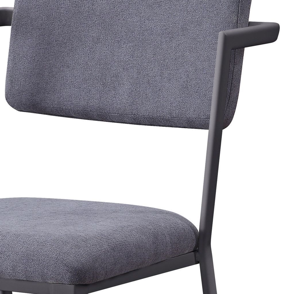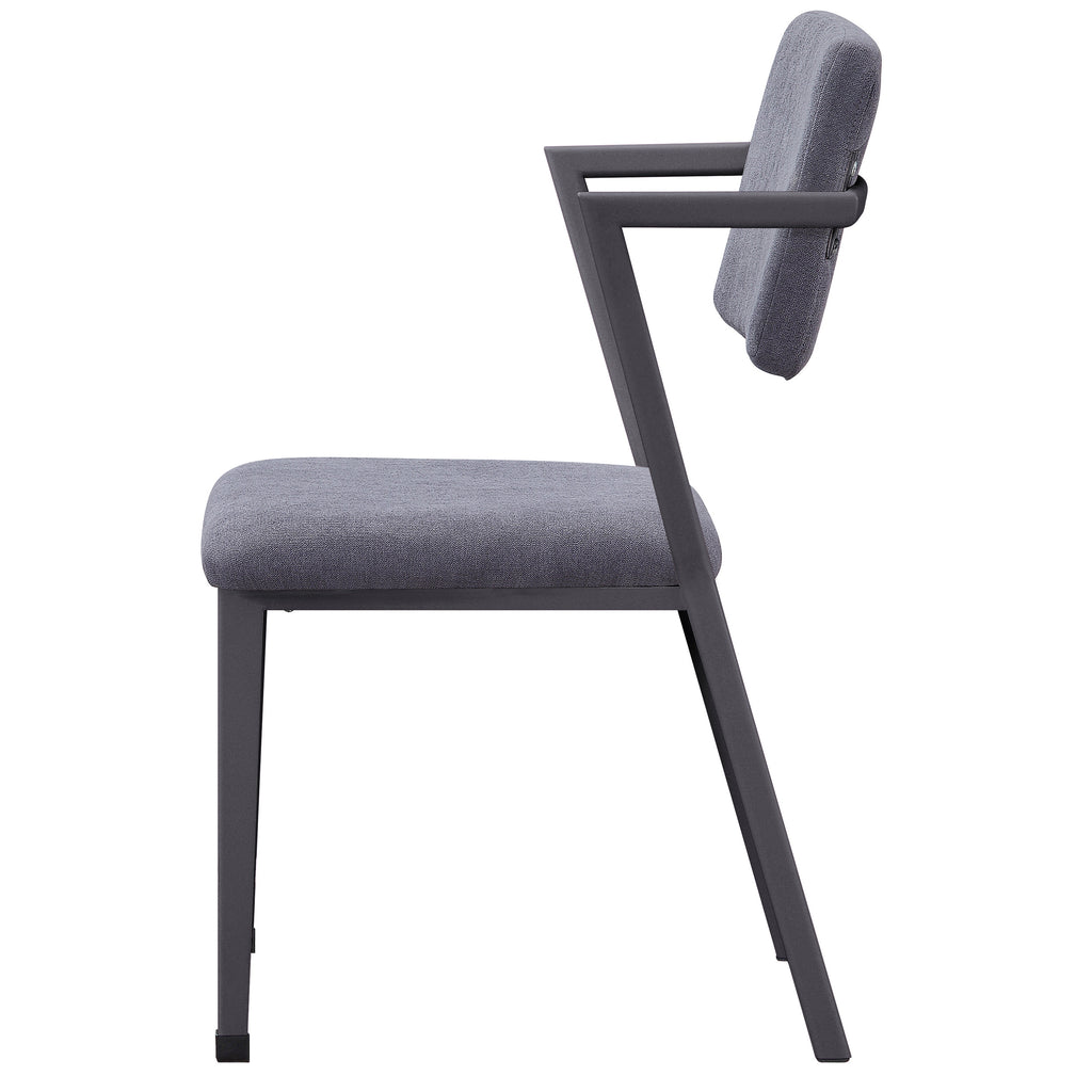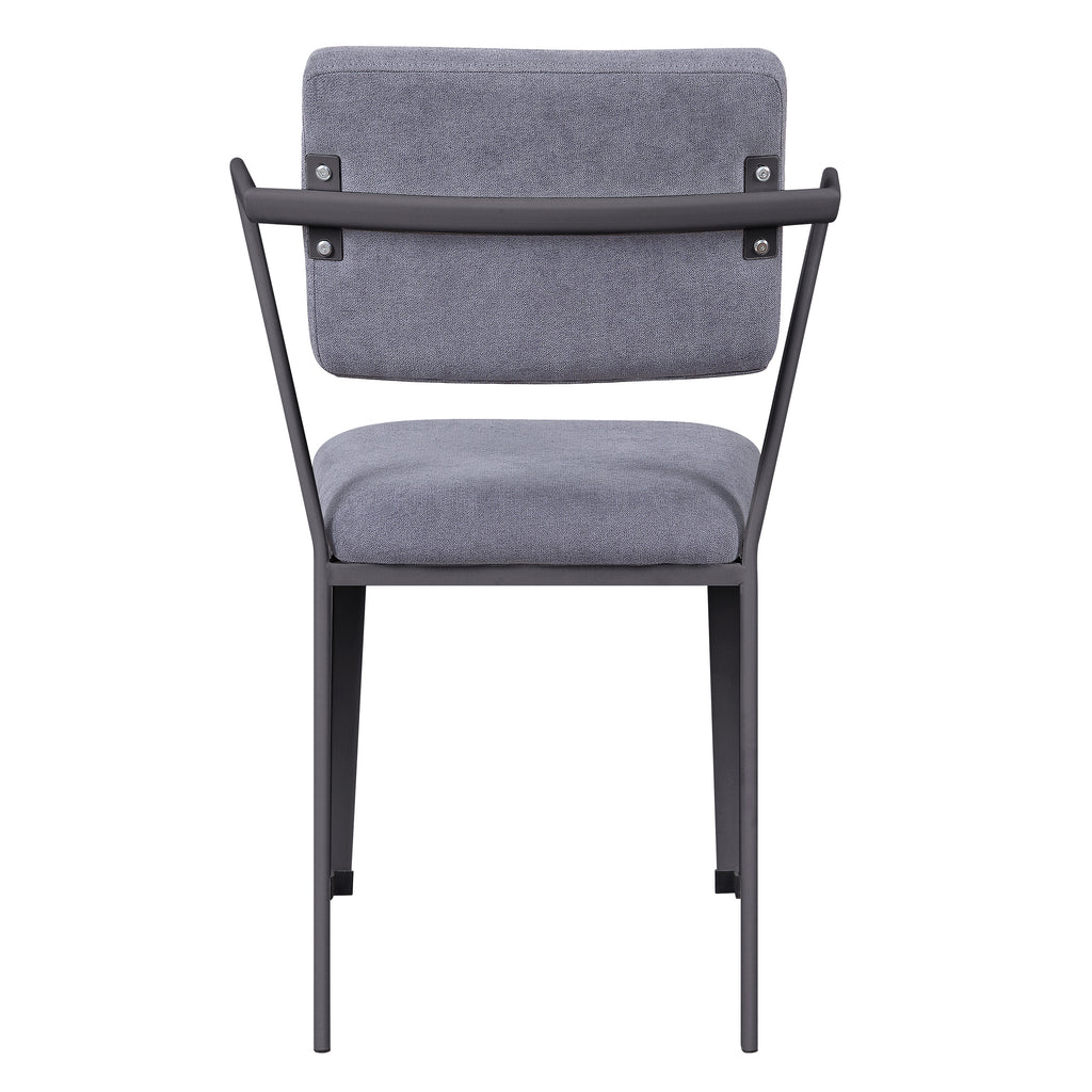 This office chair features an open back design for breathability and modern aesthetics, enhancing your workspace with style. Upholstered in grey fabric, it exudes sophistication and versatility, blending seamlessly with various office decor styles, while its padded seat cushion ensures plush comfort, supported by metal legs and frame for durability and stability, with a touch of modernity.