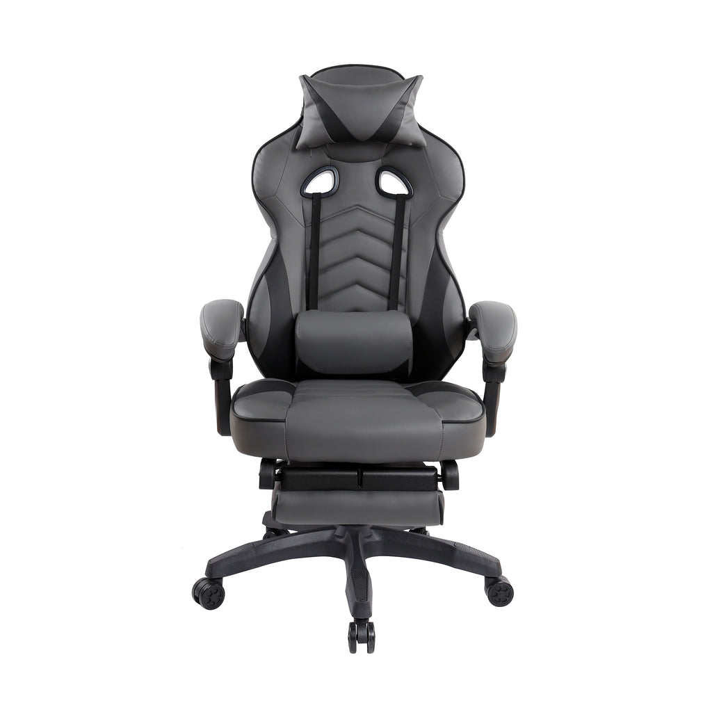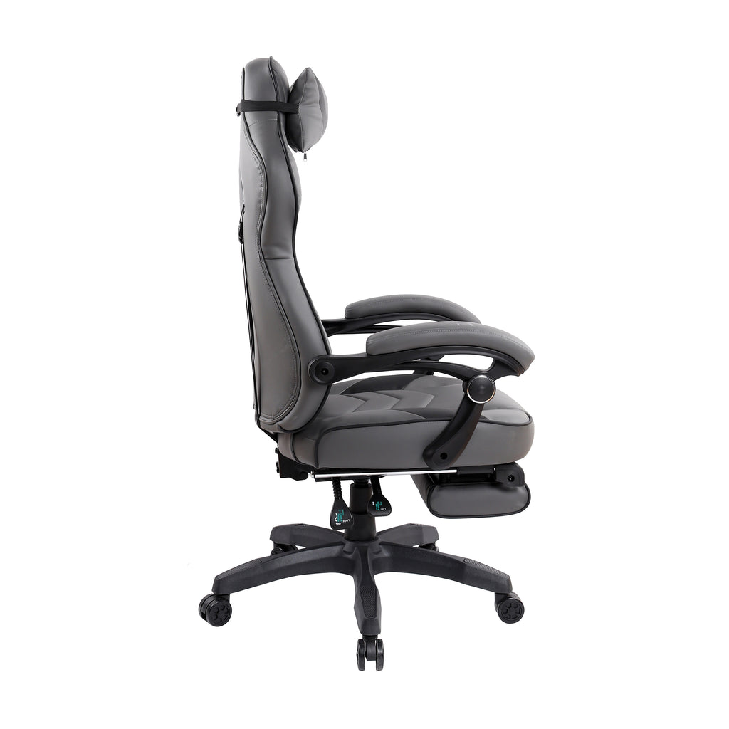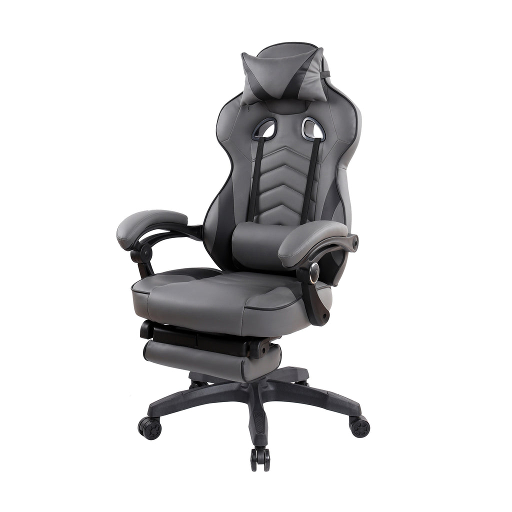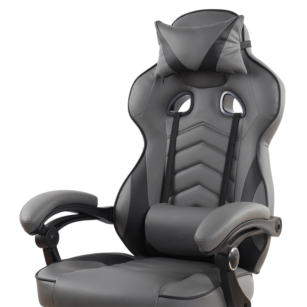 - Enhanced with lumbar support and headrest pillows this chair is designed to provide ergonomic support and reduce back and neck strain.