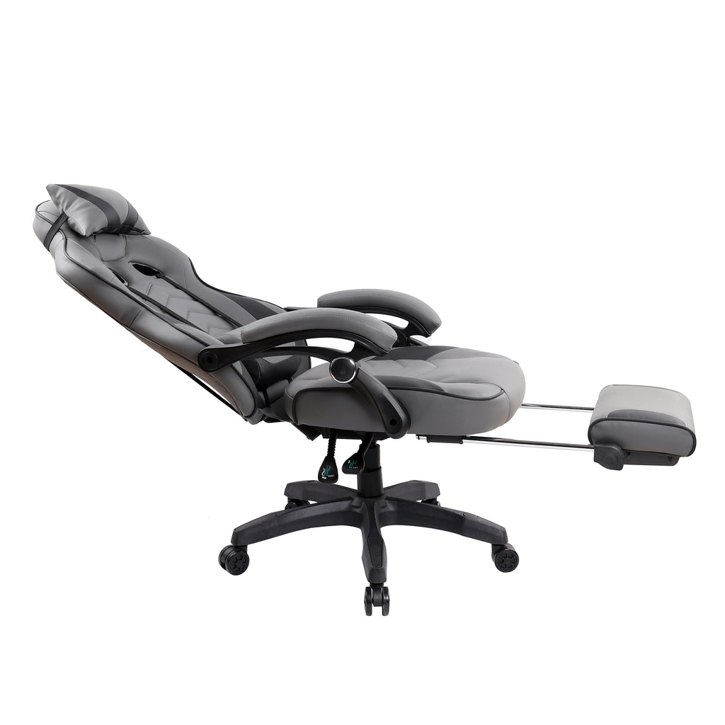 Techni Mobili Gaming Racing Style Fully Reclining Executive Office Chair with Footrest, Black & Grey