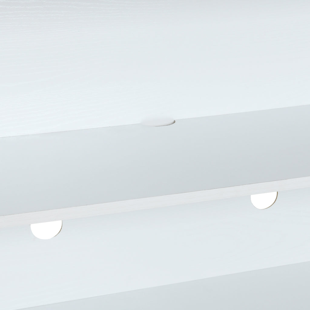 - Elegant Design: This cabinet seamlessly blends functionality with elegant modern design. The overall structure of the cabinet is refined, featuring smooth curved lines and rounded corners that create a soft and harmonious visual effect, allowing it to integrate seamlessly into various interior decor styles. The doors are adorned with woven rattan texture, which not only enhances the visual layering but also brings a hint of natural charm to the overall design.