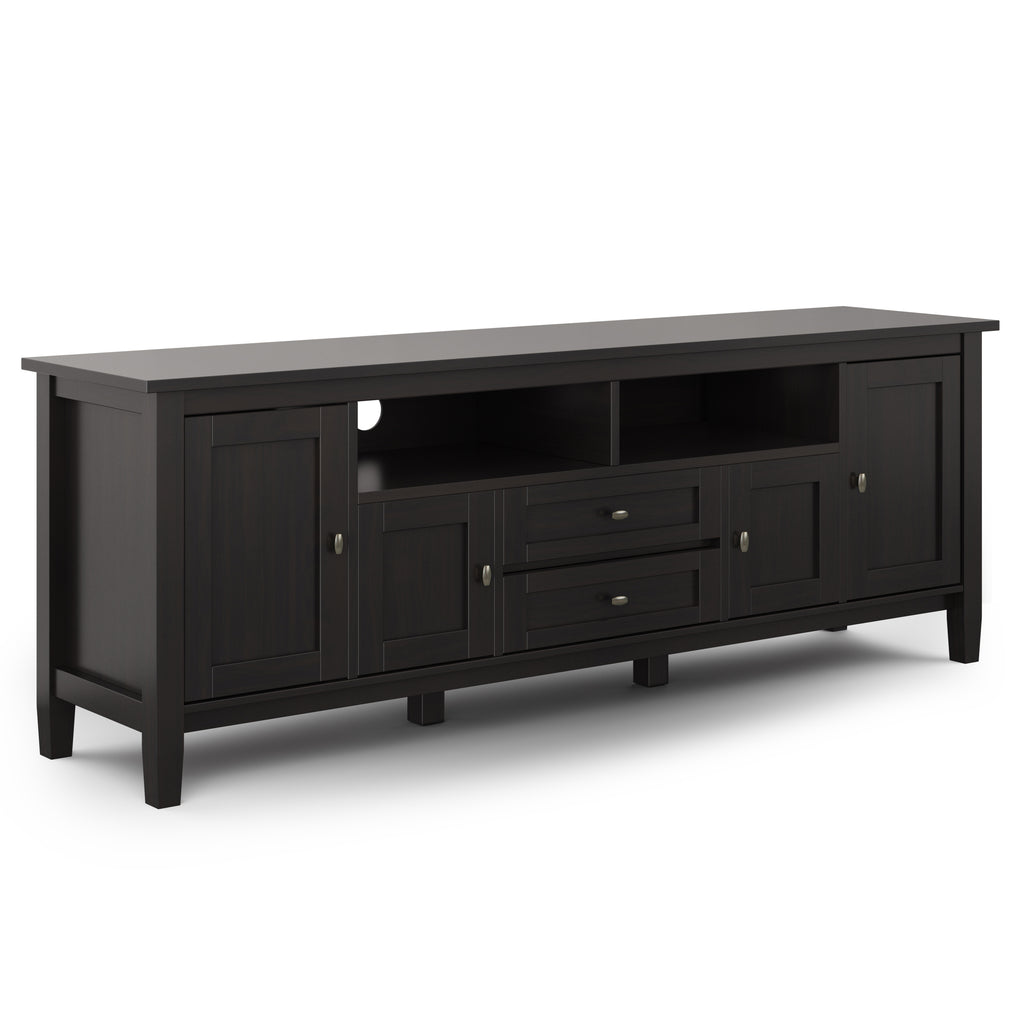 - Extra wide TV Stand is perfect for TVs up to 80 inches, includes cord management cut-outs for easy installation of TV and media components.