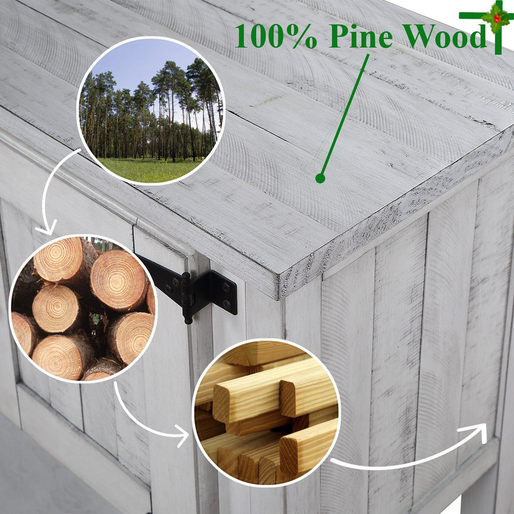 - 『Sturdy & Stable Construction』: This buffet table is mainly made of SOLID PINE WOOD with environment-friendly painting, which is wear-resistant and durable for long-term use. The top shelf and cabinets frame, and four legs are all made of solid pine wood,which are extremely sturdy and stable to support up to 220 lbs without wobbling(weight capacity: tabletop 220LB; bottom shelf 44LB, cabinet and drawer: 26LB)