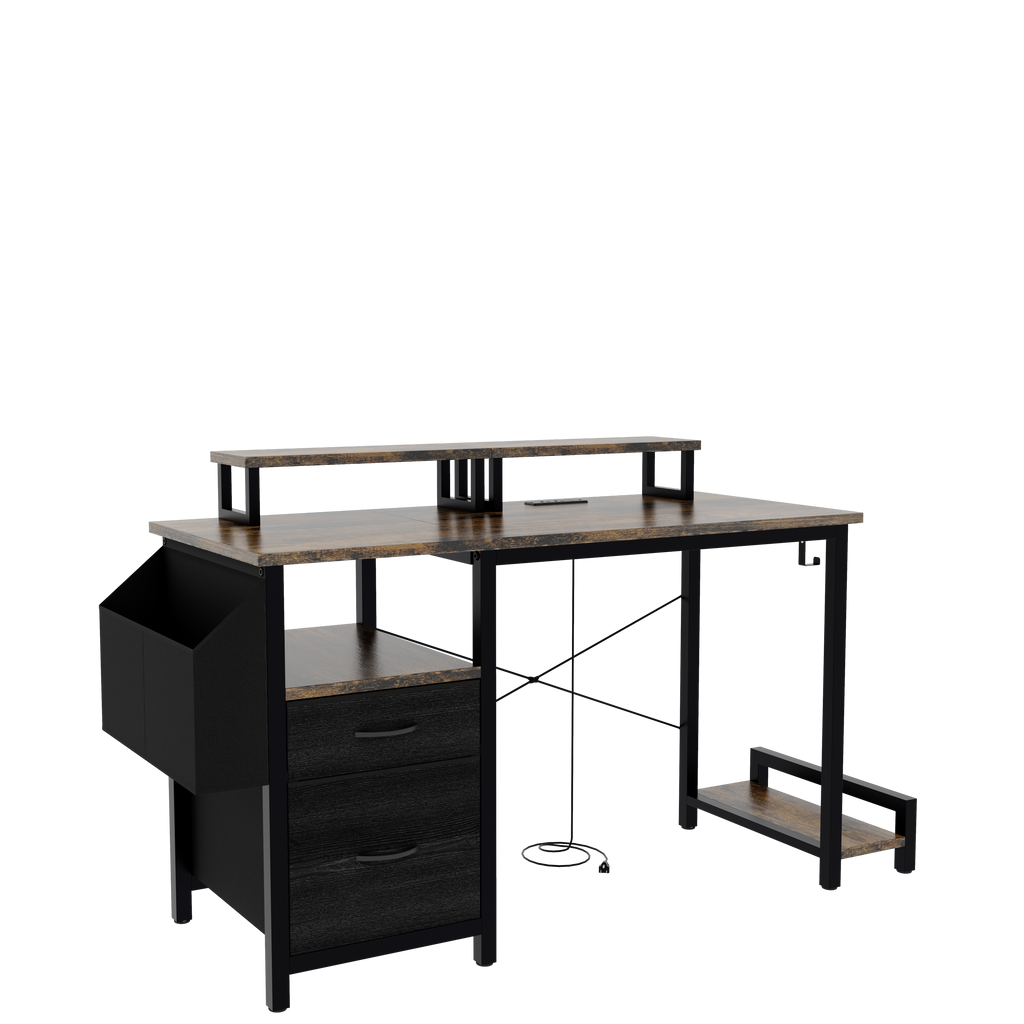 - [Features 2 Fabric Drawers, an Extra-Large Side Pocket, and 1 Hook]: Two foldable and easy-to-pull fabric drawers (with a sturdy 5mm base) offer ample storage for your daily needs, allowing you to categorize and store files, stationery, books, and personal items. The thickened and widened side hook can hold backpacks, headphones, etc., saving space and keeping your desktop organized.