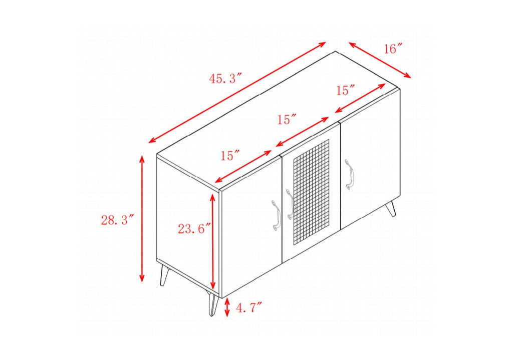 In summary, the Three-Door Cabinet with Rattan Mesh is a high-quality, stylish, and functional storage solution for any space. Its stable and durable structure, large storage space, and elegant frame make it the perfect addition to any room. Whether you want to use it in the living room, restaurant, kitchen, or bedroom, this cabinet is sure to meet all your needs.