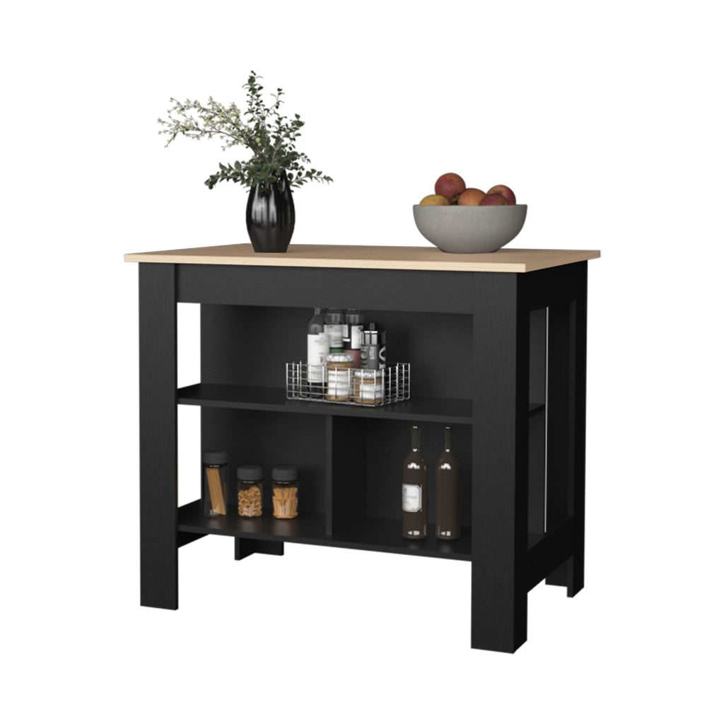 'Kitchen Island with Open Storage Experience the perfect blend of functionality and style with our Kitchen Island. This model features ample open storage, ideal for keeping your cooking tools within reach. It includes three spacious shelves, perfect for storing pots, pans, and your favorite ingredients. Crafted with high-quality materials, this kitchen island is not only practical but also serves as a stylish centerpiece in your culinary space.
