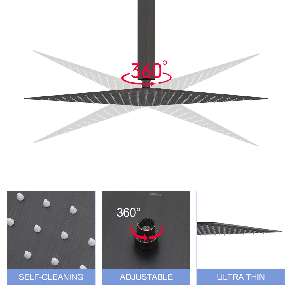 - 304 stainless steel casted shower head - 16 Inch Rainfall Shower Head Solid Square Ultra Thin 304 Stainless Steel, Waterfall Full Body Coverage with Silicone Nozzle