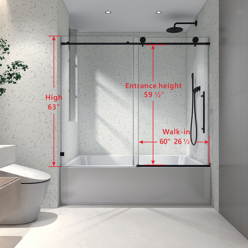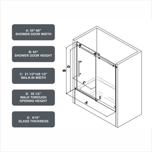 - With soft-closing function, soft-closing function which is adjustable and works even after cutting 5 inches.And it can pass 50,000 times of door opening and closing test. Maximum permissible wall inclination 3/8''.60'' product is suitable for 55''(door space is 21.8'') to 60.8'' space,54'' product is suitable for 49''(door space is 16.8'') to 54.8'' space,48'' product is suitable for 44''(door space is 18.8'') to 48.8'' space .A drawing of the opening door dimensions is attache.
