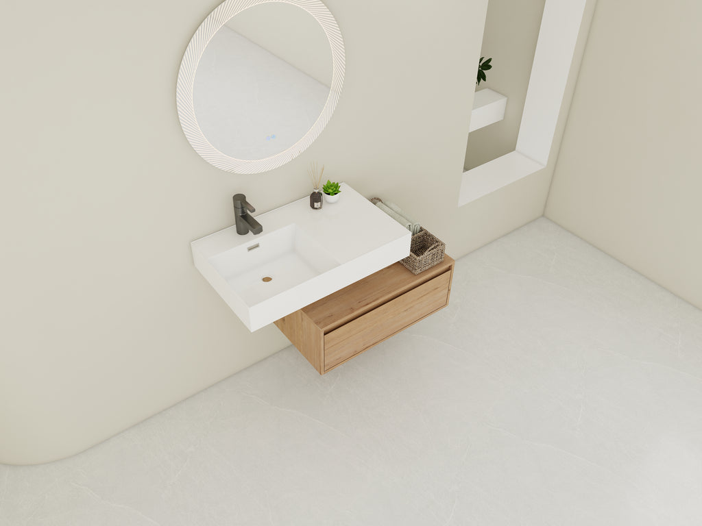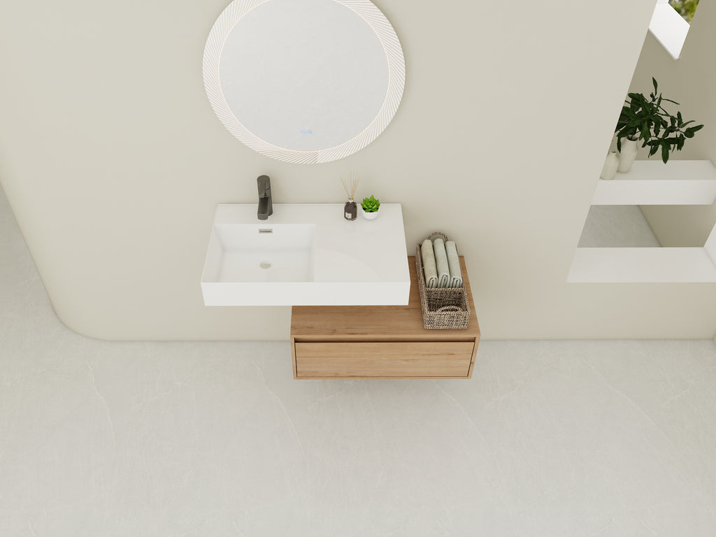 The spacious platform at the top of the vanity is an ideal choice for placing daily essentials, making your bathroom not only a space for washing and rinsing, but also a dual space for relaxing both body and mind.