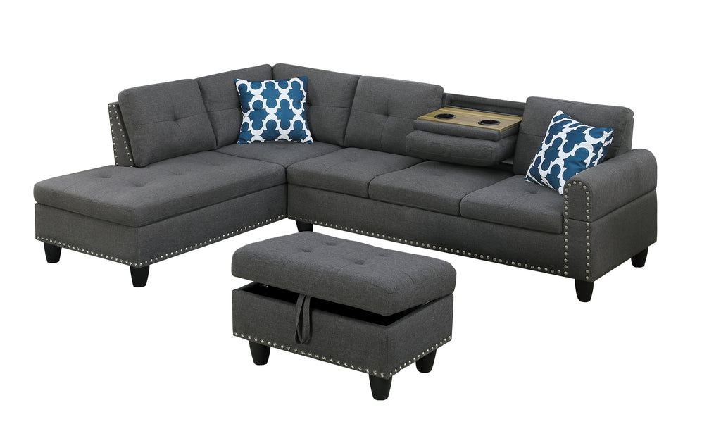 - Foam-filled cushions give you plenty of support. Rounded arms, nailhead trim, and subtle tufting in the back add a traditional feel we love. A storage ottoman and two toss pillows are also included