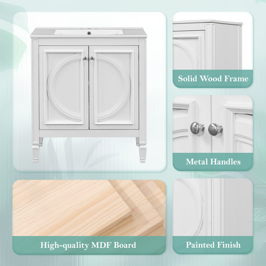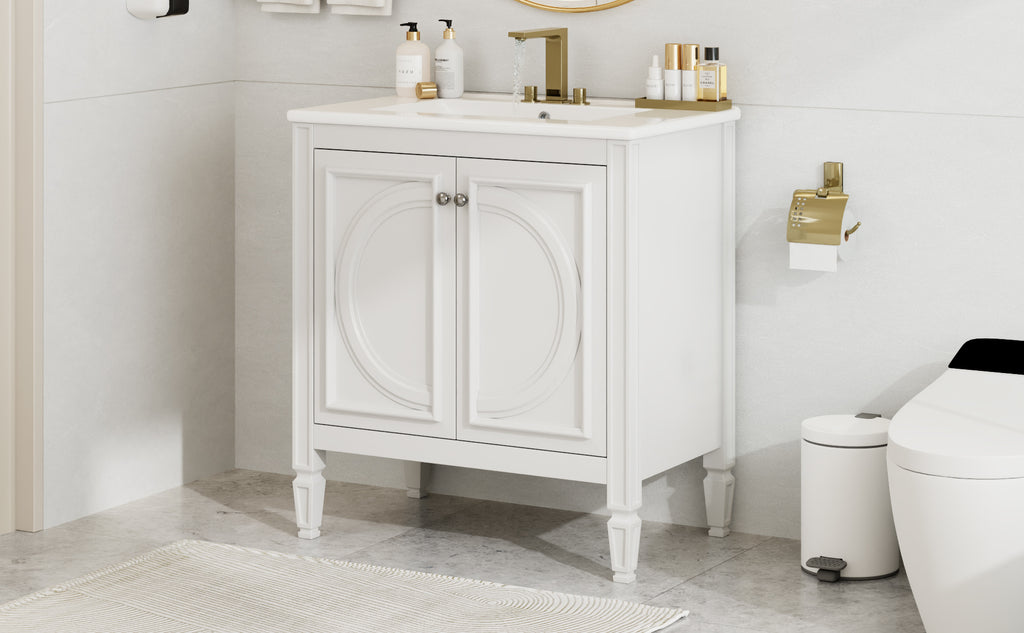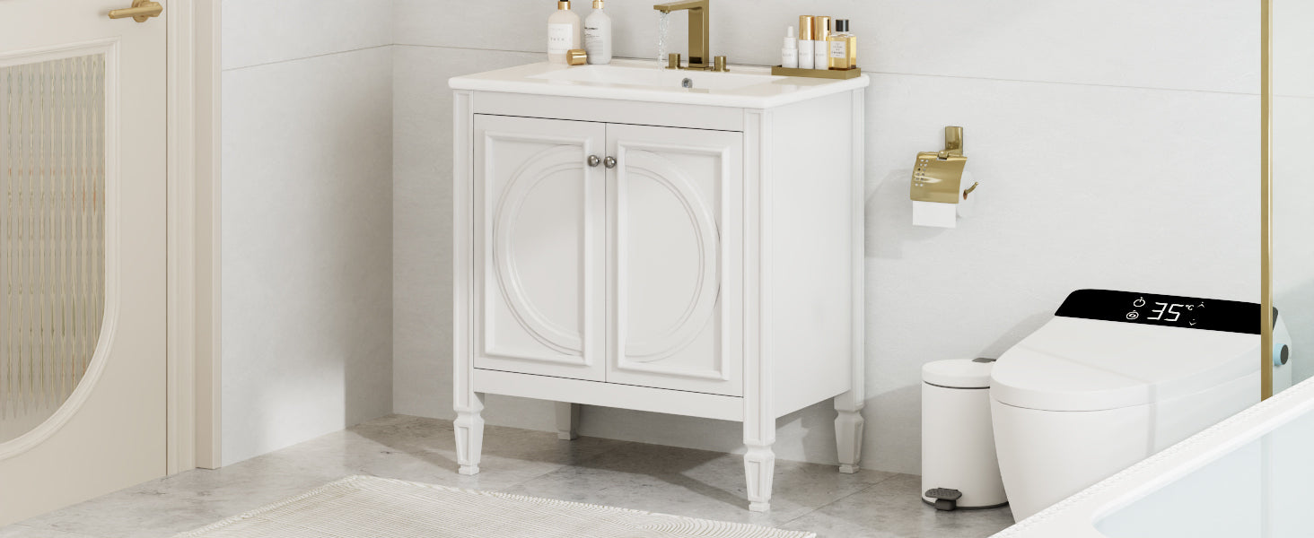 - Material: Practicality and durability is important to bathroom facilities, so we use real wood and MDF boards for this product, which not only increases the product stability but also ensures a long-lasting use. Furthermore, the surface of this vanity cabinet is in painted finish.