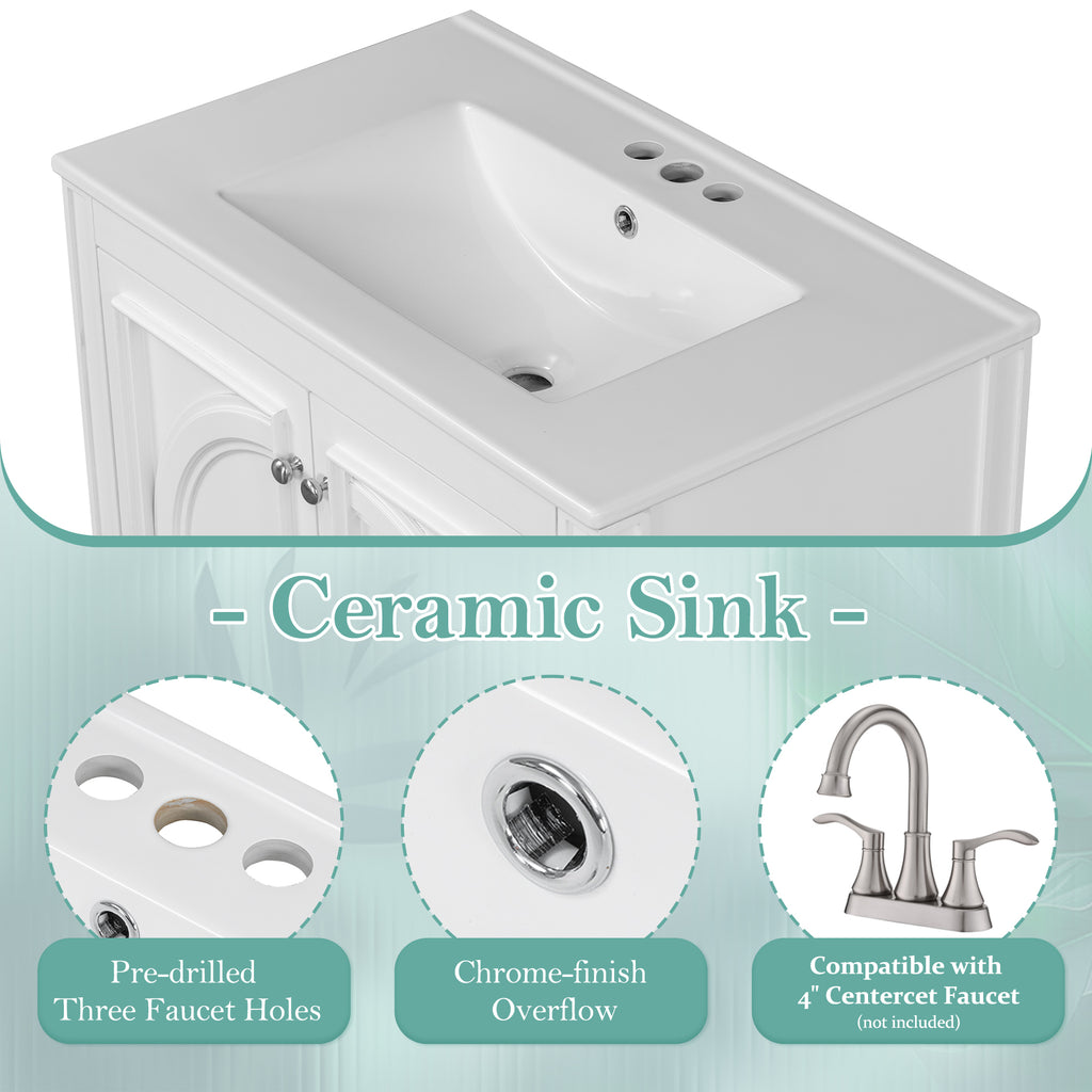 - Smooth Ceramic Sink: Our bathroom basin sink is made of solid ceramic with smooth and water-proof finish, which hardly leaves water stains. The pre-drilled three holes on the top is available to 4' centerset faucet (not included). Besides, the overflow with metal circle is in case of water spilling over when you forgot to turn off the tap.