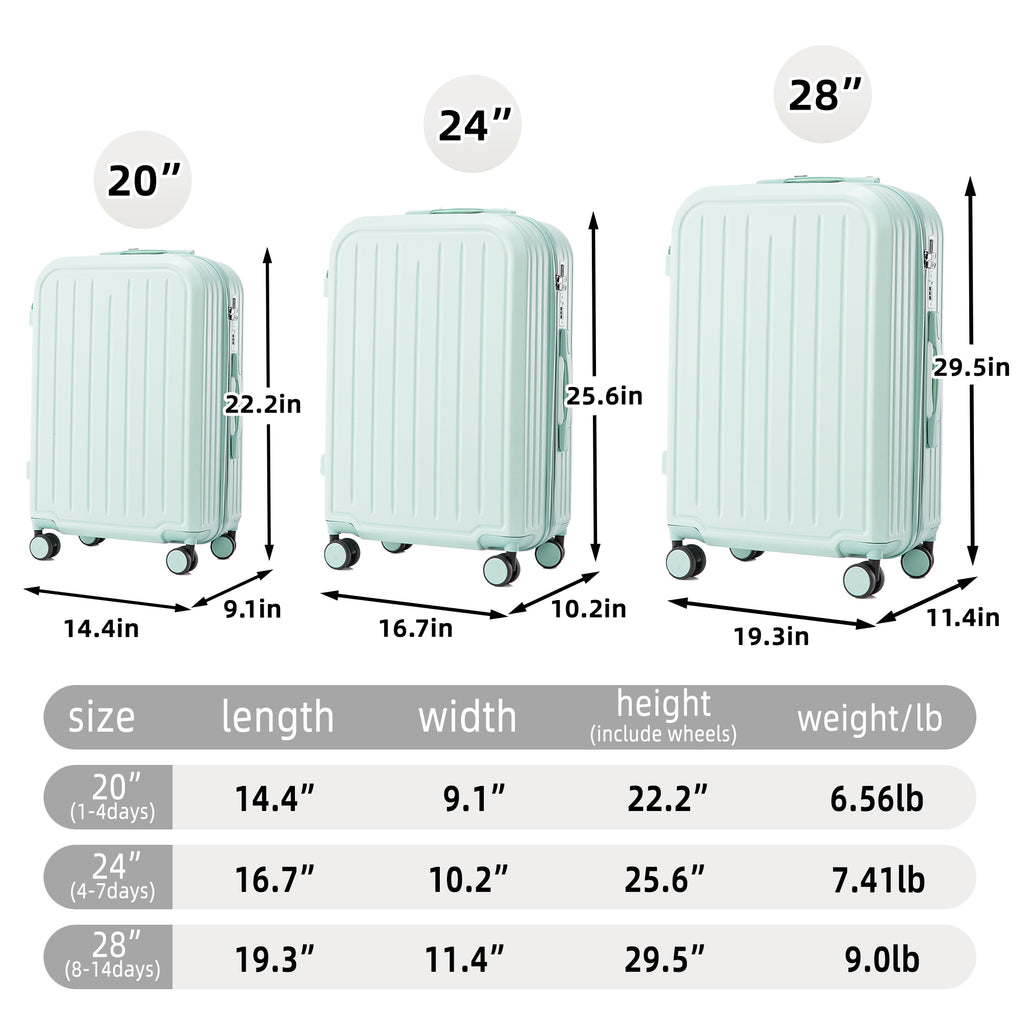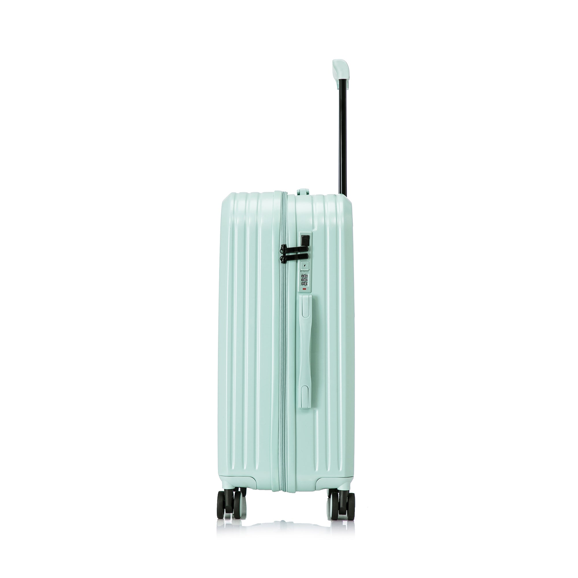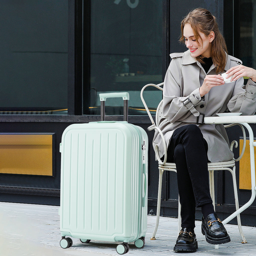 - Modern Appearance:The stylish and smooth vertical stripe design of the rolling luggage makes it more resistant to pressure and wear and brings a good mood to your journey. It includes four molded side feet, they allow the luggage to remain upright even when standing on its side.