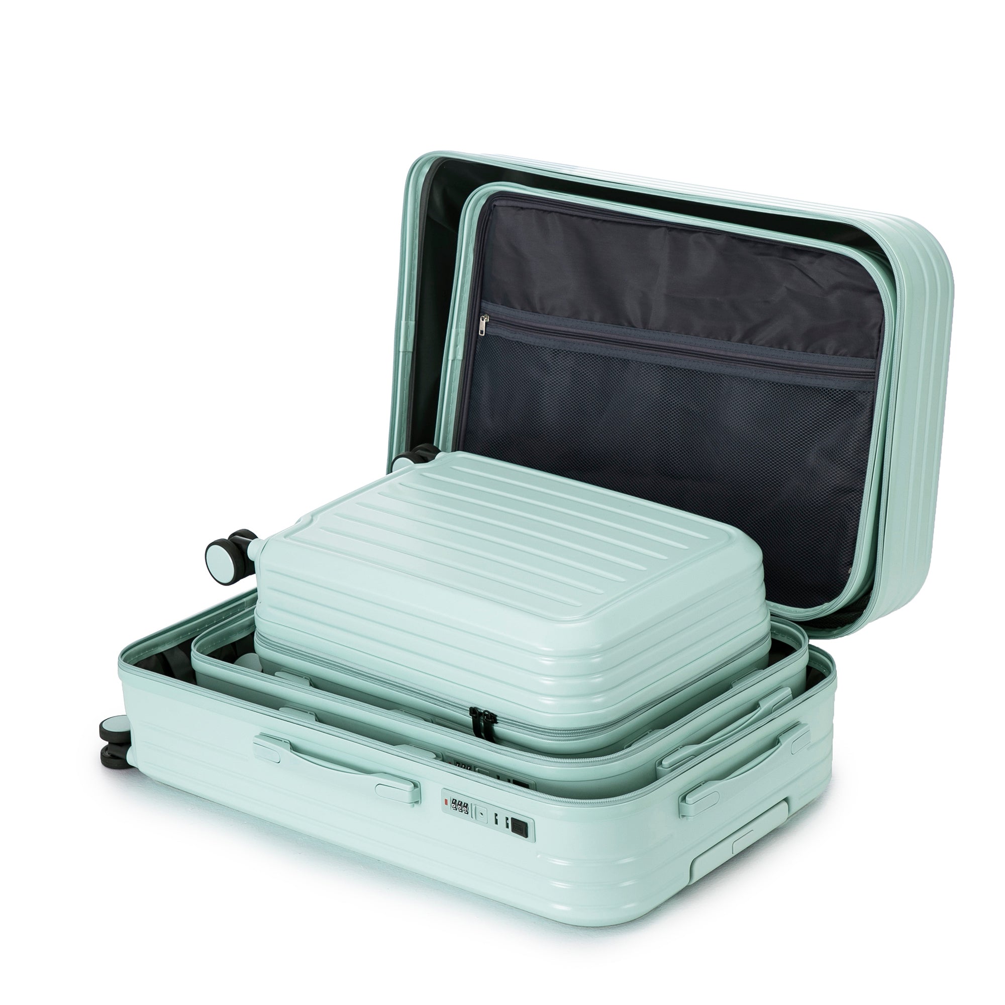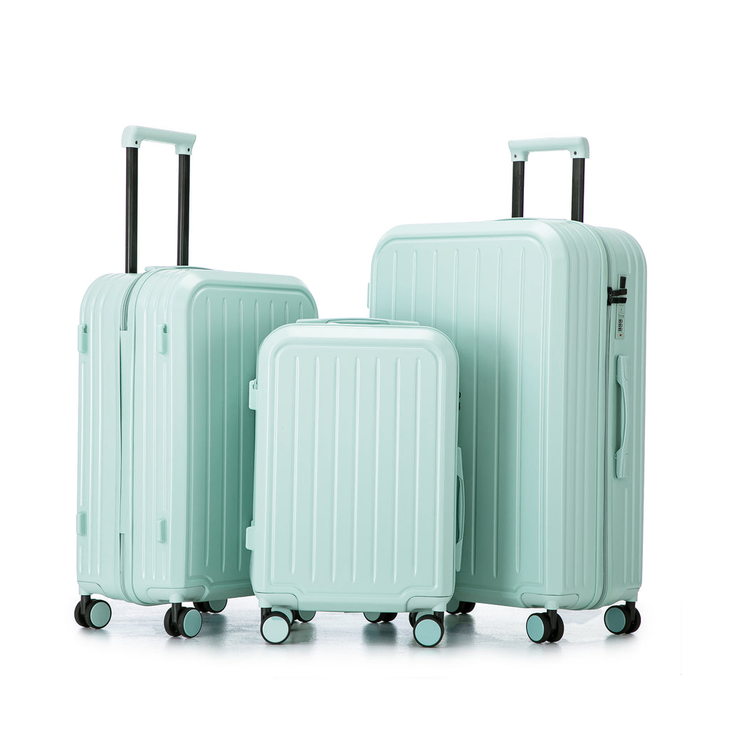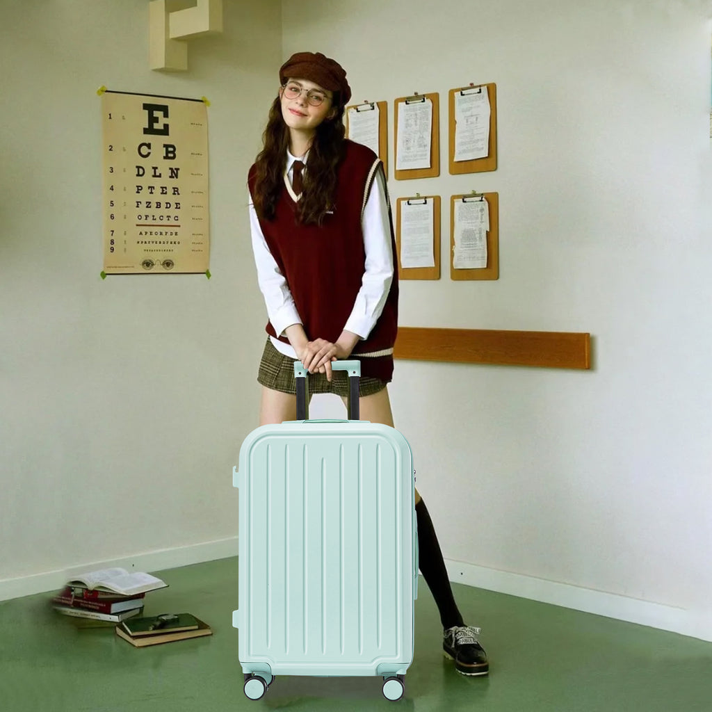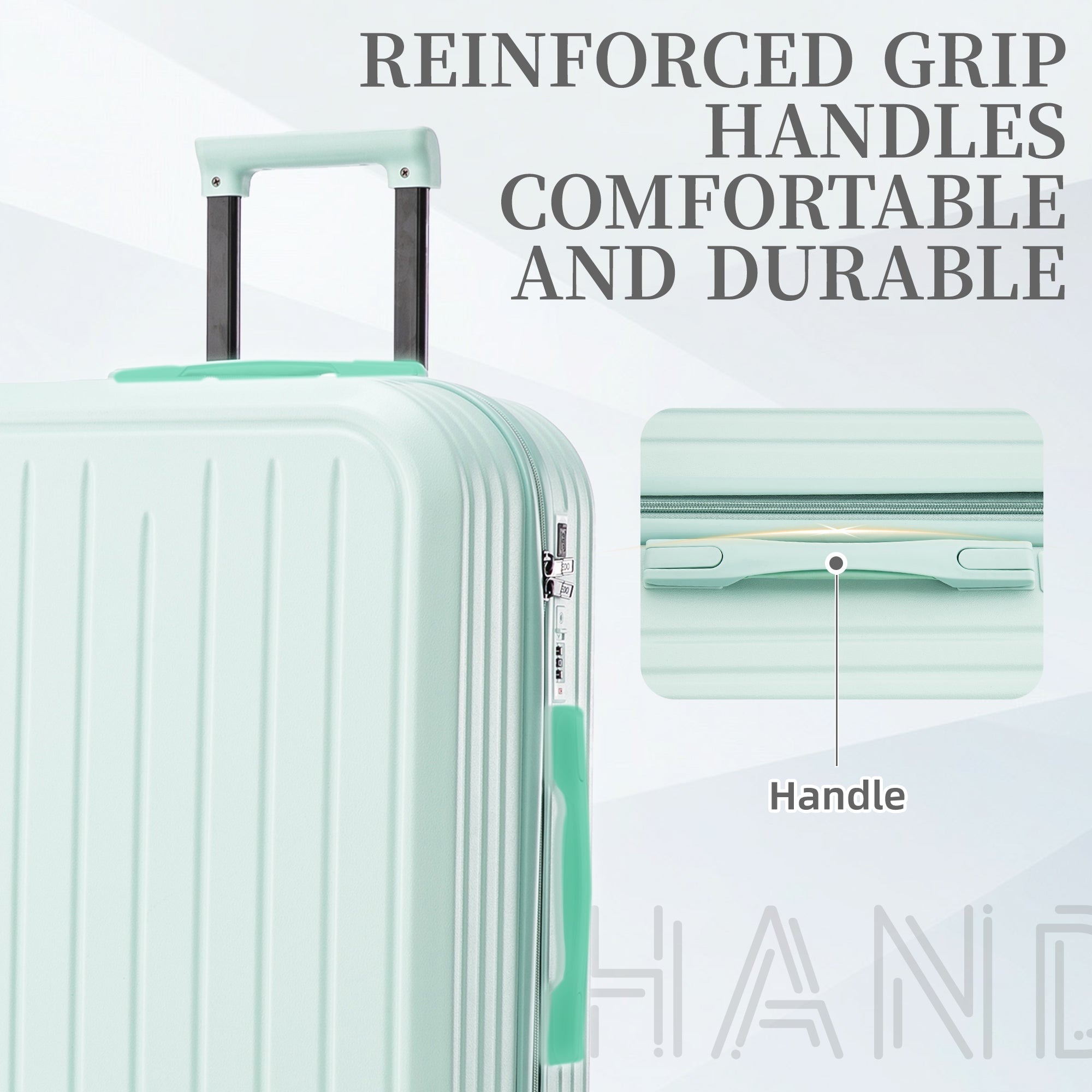 - Modern Appearance:The stylish and smooth vertical stripe design of the rolling luggage makes it more resistant to pressure and wear and brings a good mood to your journey. It includes four molded side feet, they allow the luggage to remain upright even when standing on its side.