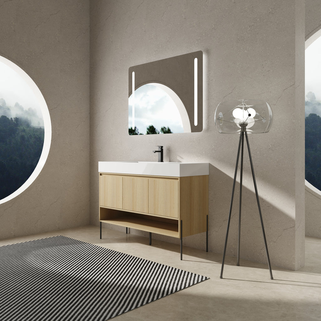 - Stylish design: A unique tripod with a light color cabinet makes your bathroom look simple and elegant