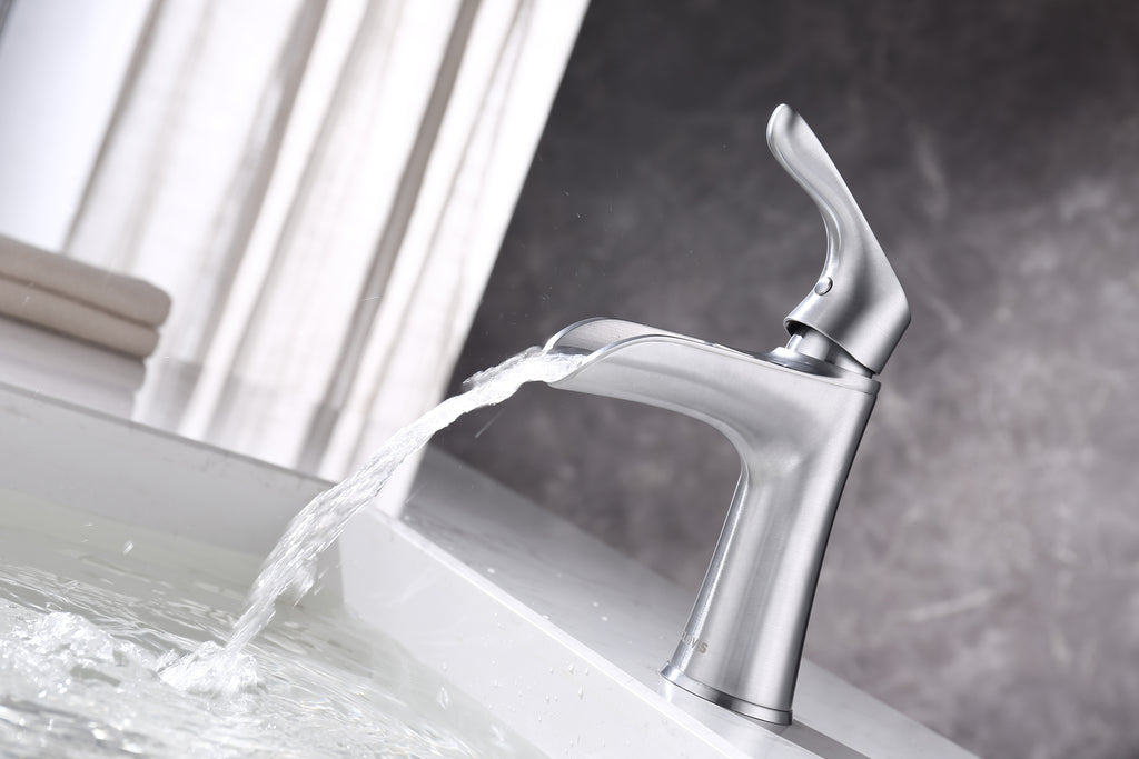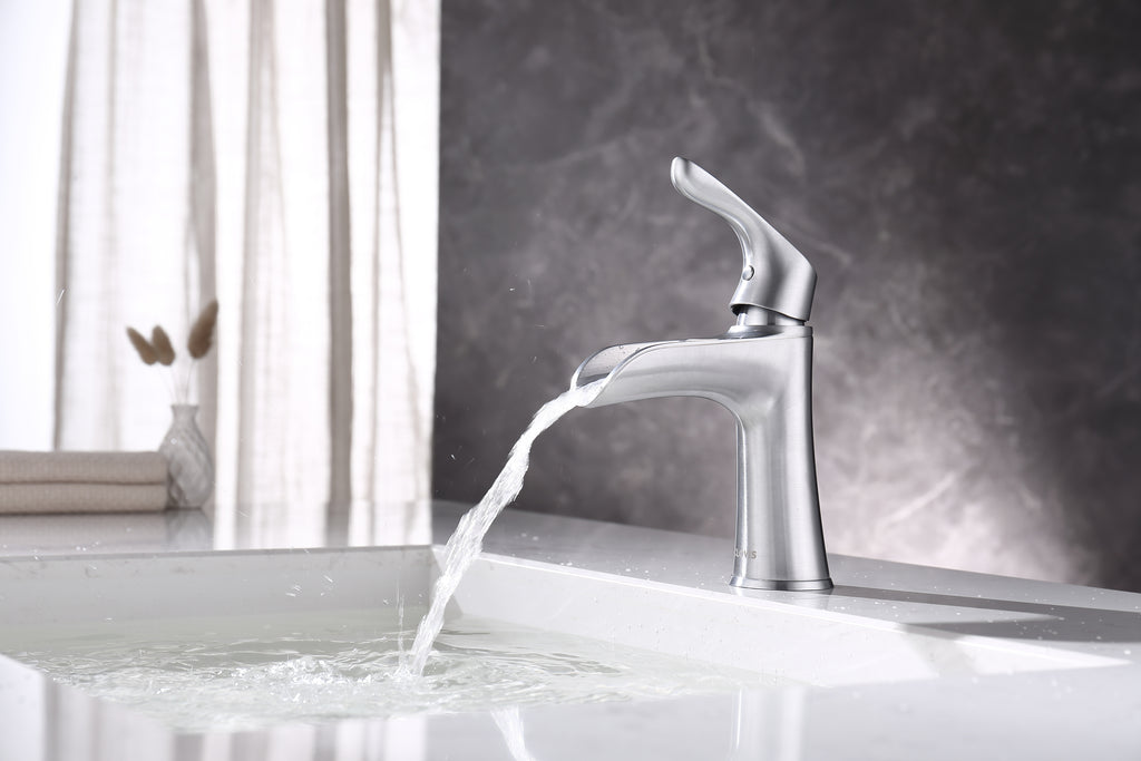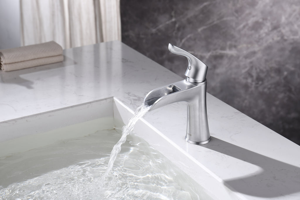 - Single handle lavatory faucet with pop up drain, Brushed chrome