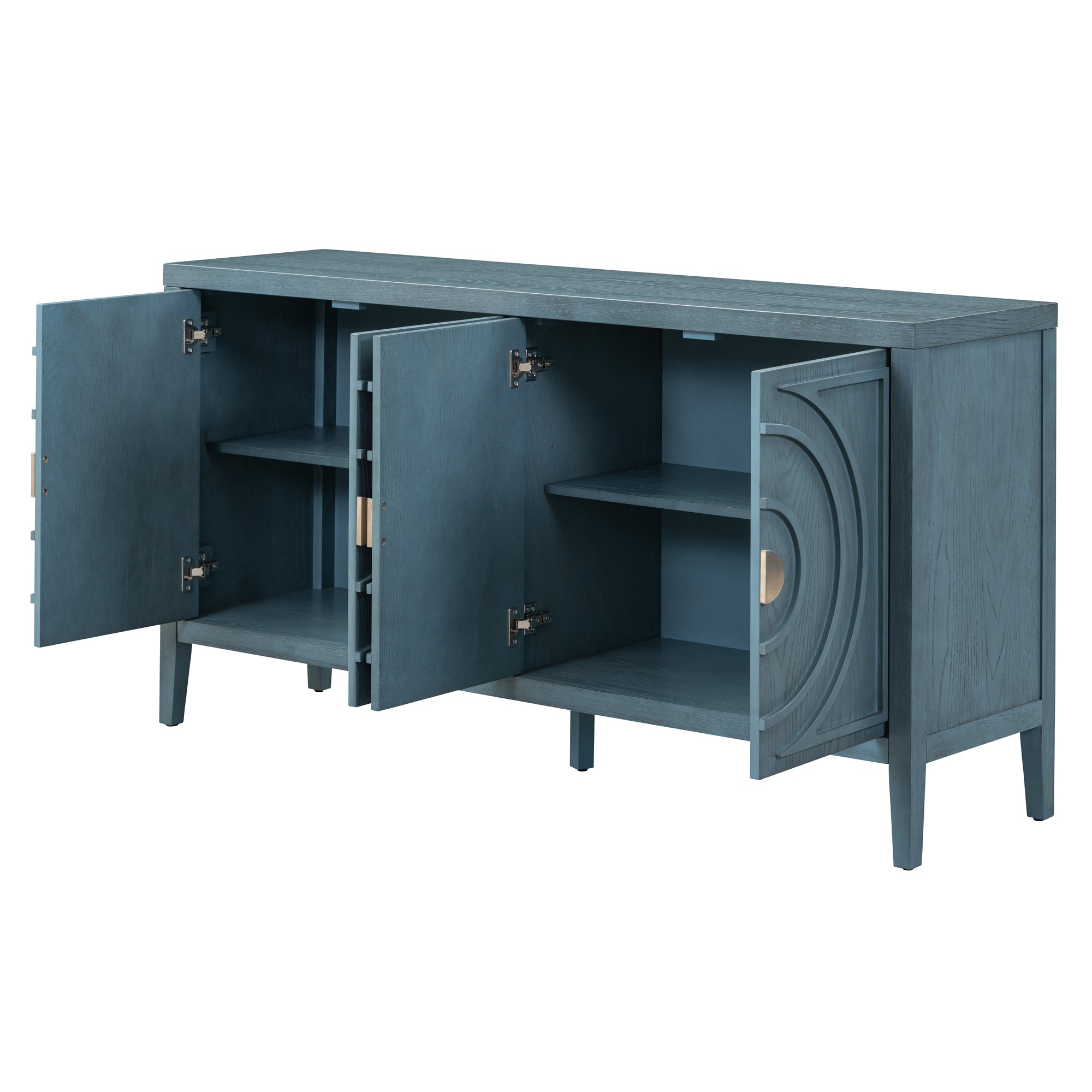 This retro sideboard has four doors with rounded lines on the doors to create a three-dimensional look. You can put it in the kitchen, entryway or living room, the country style cabinet adds a warm atmosphere to your home. You can choose from four colors, antique blue, gray, white and black. Each color presents a different style. Gray and black are more classic, and white and antique blue are brighter and more prominent. They can be styled with your decor and will fit perfectly into any room.