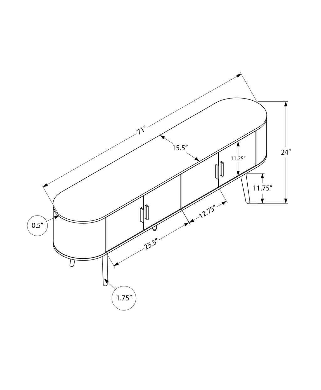 - Easy to assemble with illustrated instructions and hardware included, this tv console boasts curved sides and sleek handles in silver for a mid-century flair, bringing fashionable style to any contemporary home.