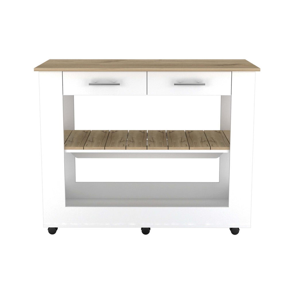 - Kitchen Island features two open shelves, providing additional storage capacity for your kitchen essentials