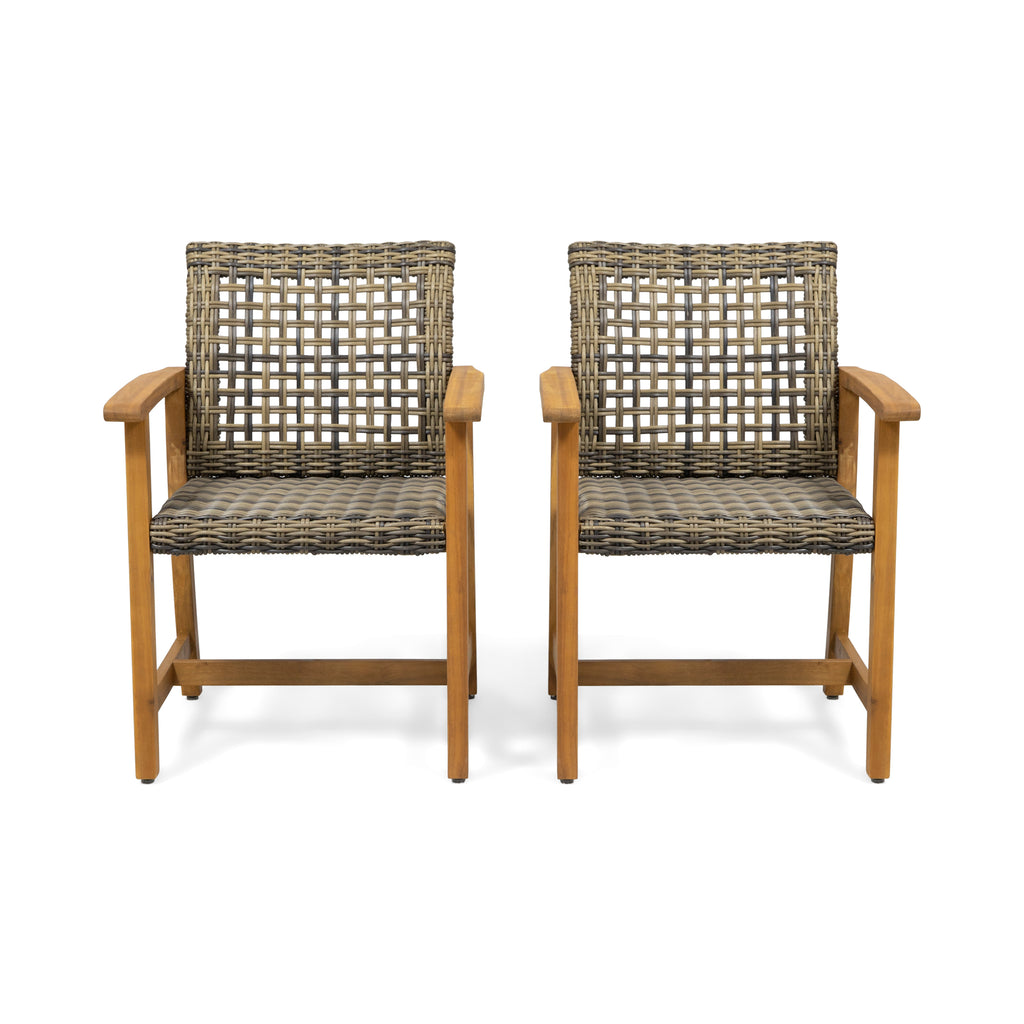 Accent your outdoor space with a set of chairs that will help you feel like you are one with nature. These Christopher Knight Home Hampton 2PK Acacia Wood and Wicker Dining Chairs feature beautiful, handwoven wicker seating that provides a classic, homey look for any patio or backyard. With comfortable seating, this chair set is perfect for enjoying the summer sun with a loved one or can be used to complete an existing set