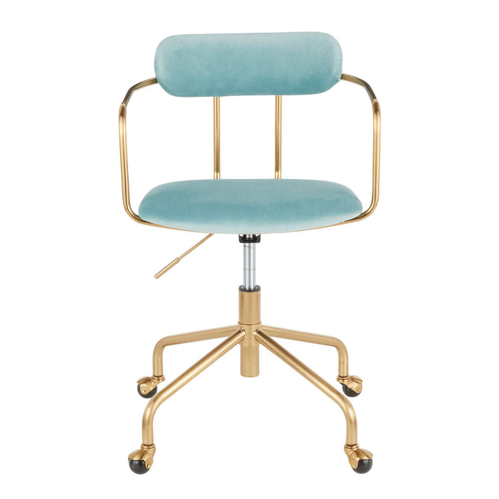 - Dress up your modern home office with the Demi Task Chair by LumiSource. Designed with style in mind, this contemporary task chair features an open back design, luxurious velvet upholstery, and a cushioned seat and backrest. Available in a variety of colors, the elegant Demi Task Chair is sure to give your space the modern look you desire.