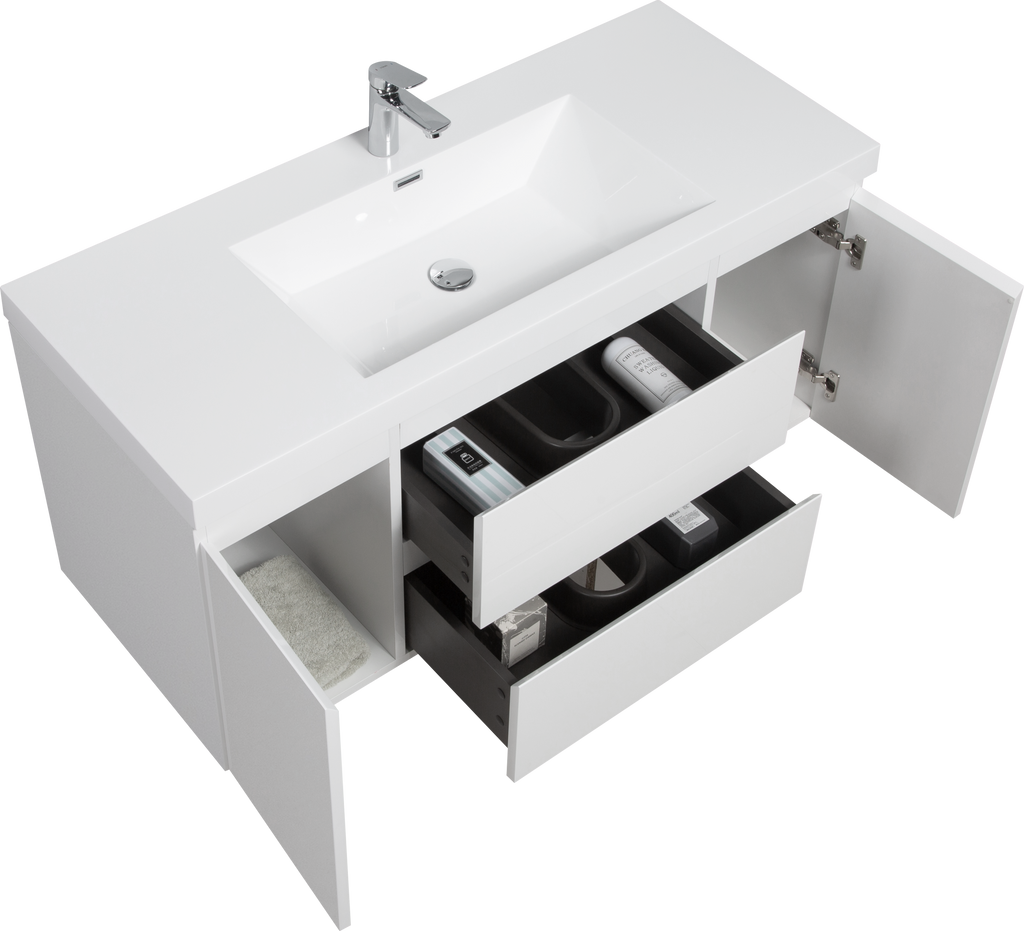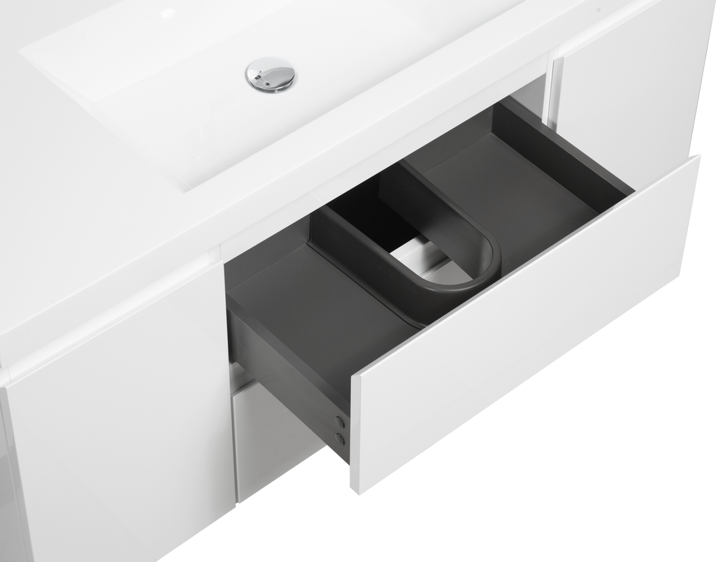 - Easy to Install: The open back design allows for easy plumbing. All components are pre-drilled for quick assembly in less than 30 minutes. Experience convenience and sophistication in your bathroom with this stylish and functional vanity solution.