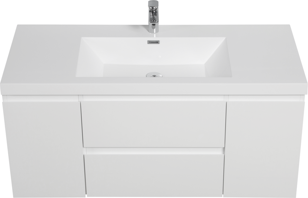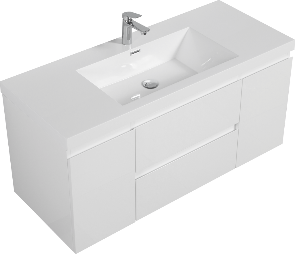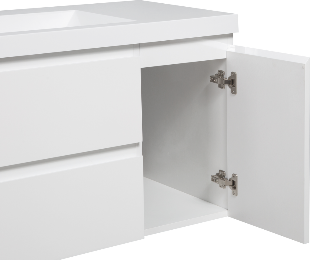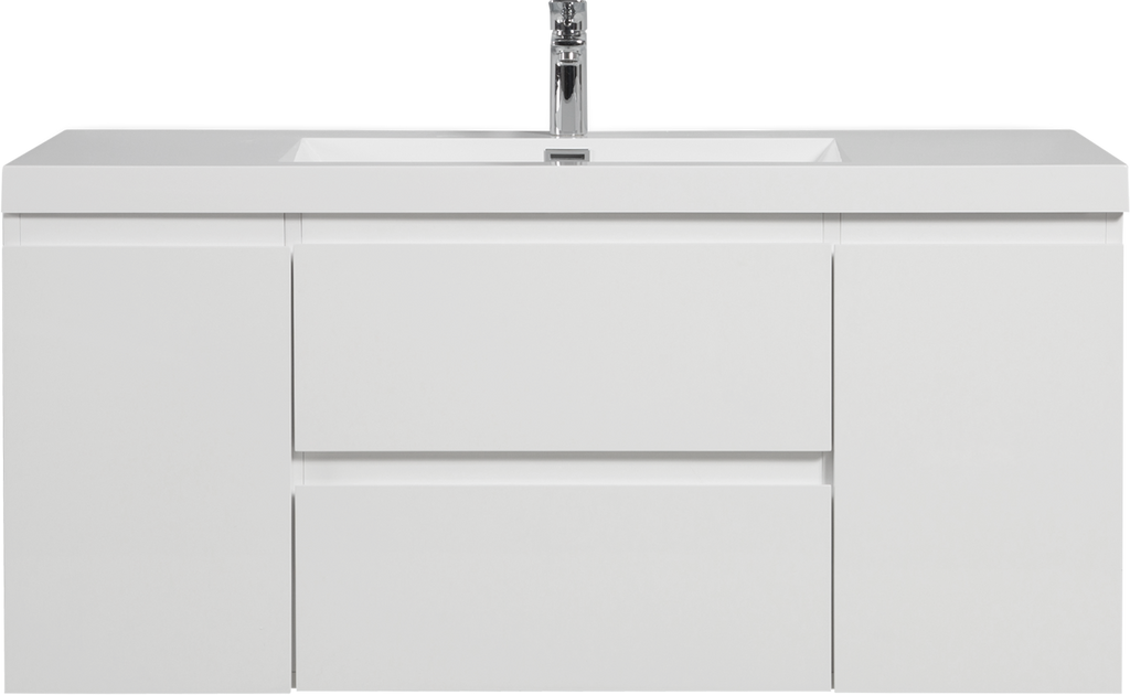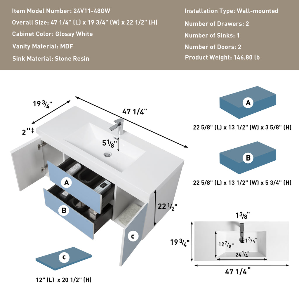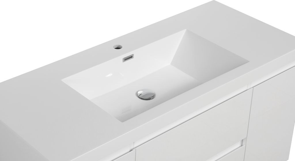 - Premium Resin Countertop: Featuring a one-piece, glossy white sink made of high-quality resin, this cabinet sink is easy to clean and resists yellowing with low water absorption. It is compatible with 1-3/8' single hole faucets and 1-3/4' pop-up drains (faucets and drains not included).