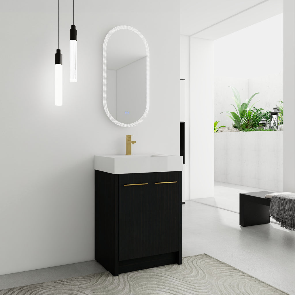 - Bring luxury to your bathroom with our contemporary bathroom vanity. Store all your essentials with ease in the ample bottom storage.