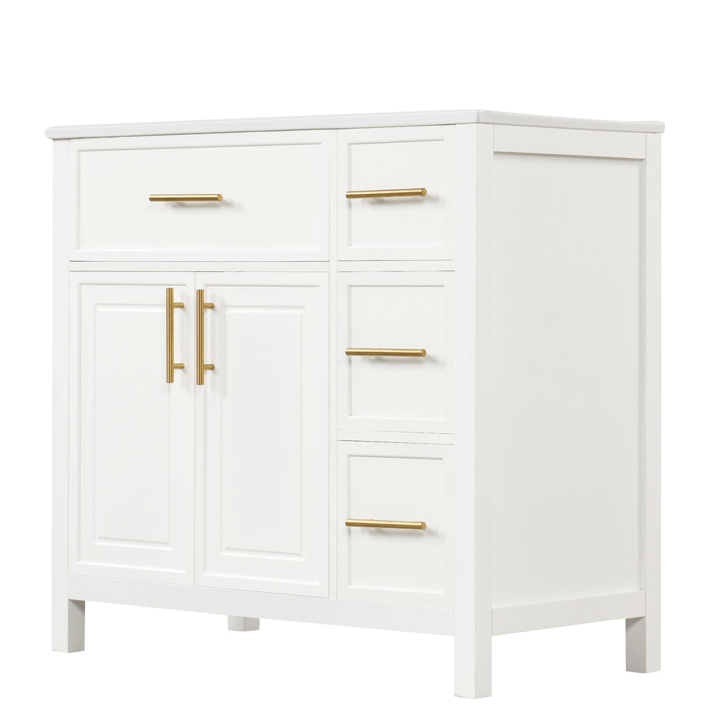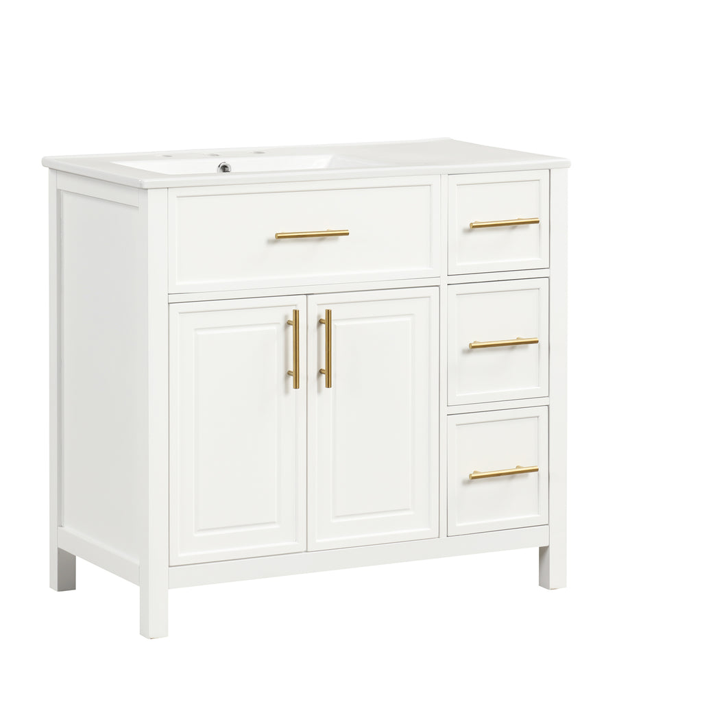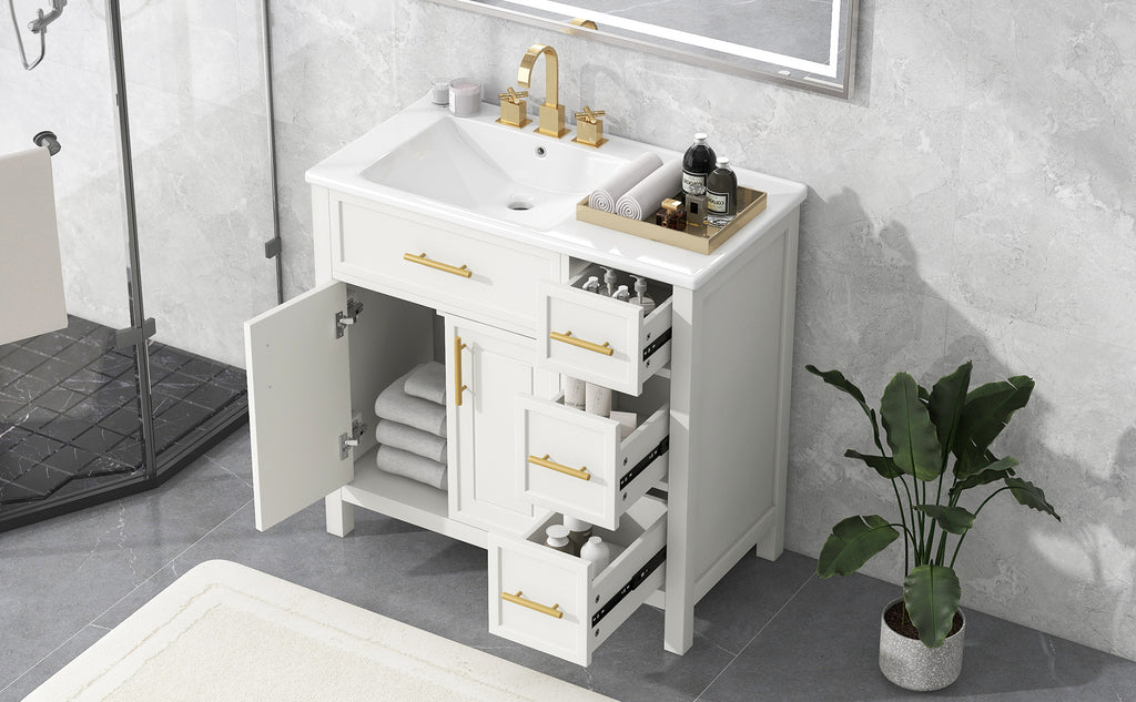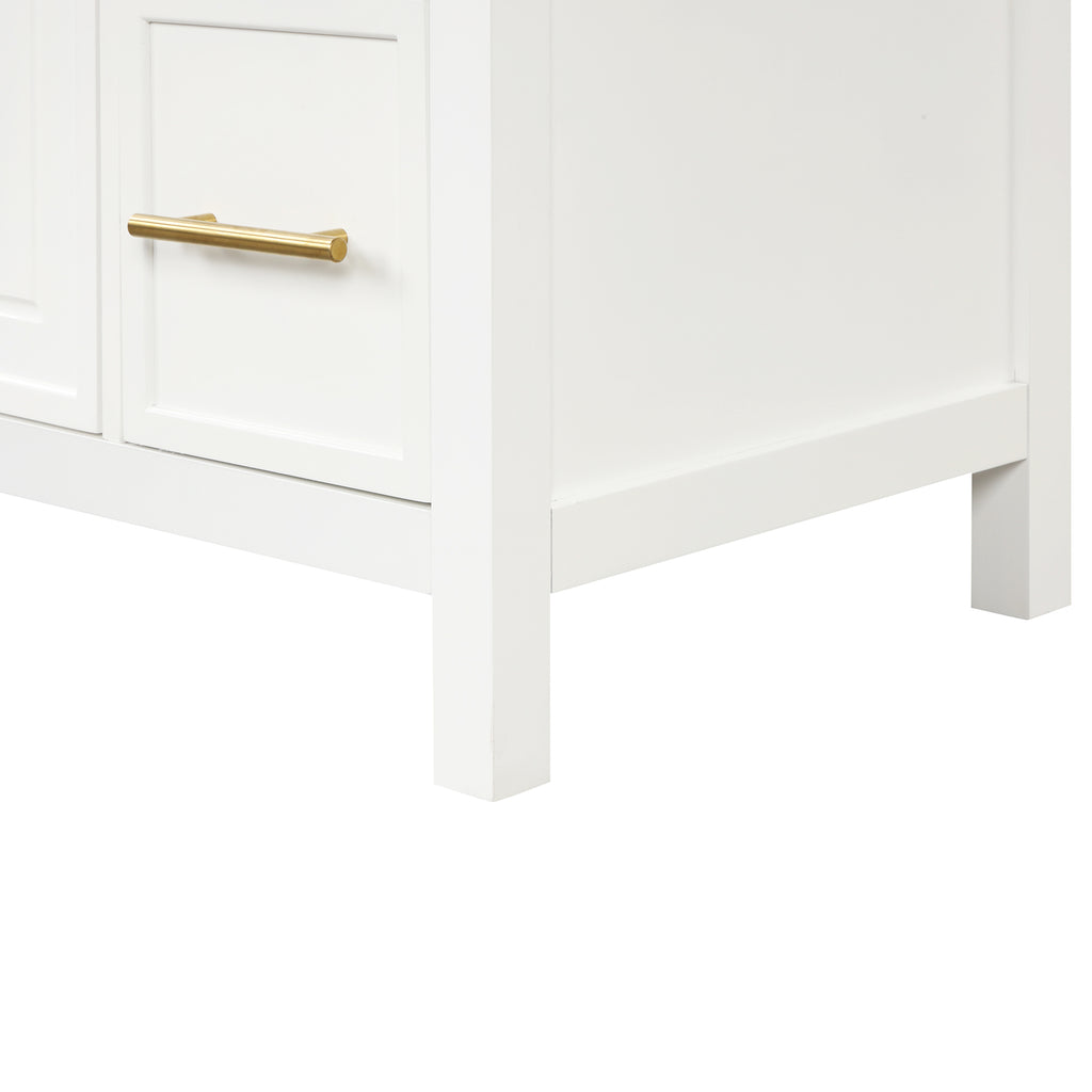 - Design & Detail: The groove line design on this vanity cabinet increases elegance to your room. Gold handles, stainless steel door hinges and slide rails comfort your daily using experience.