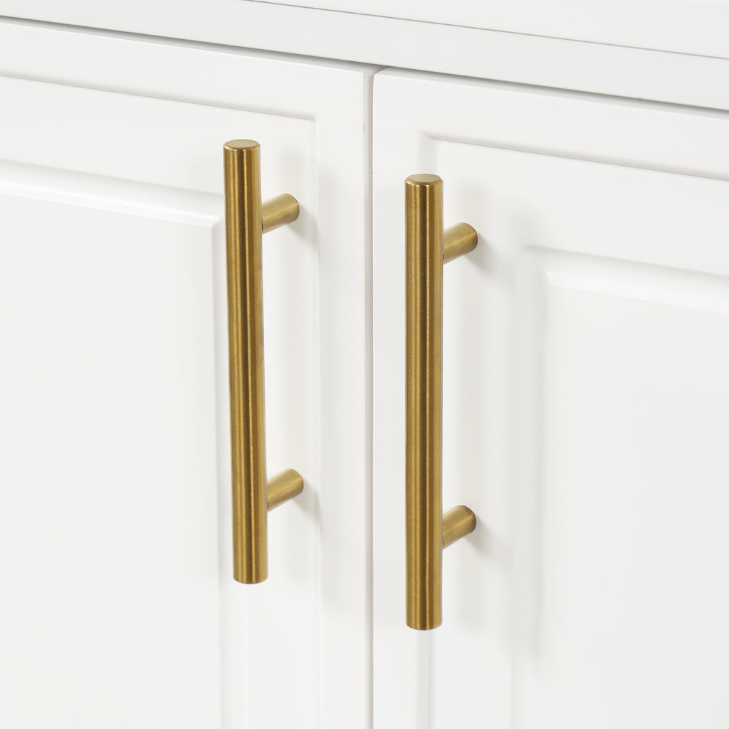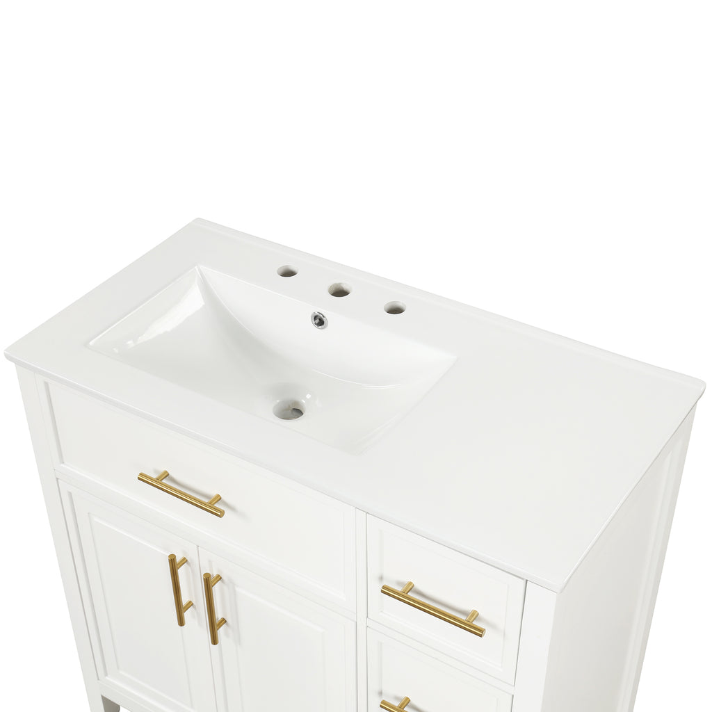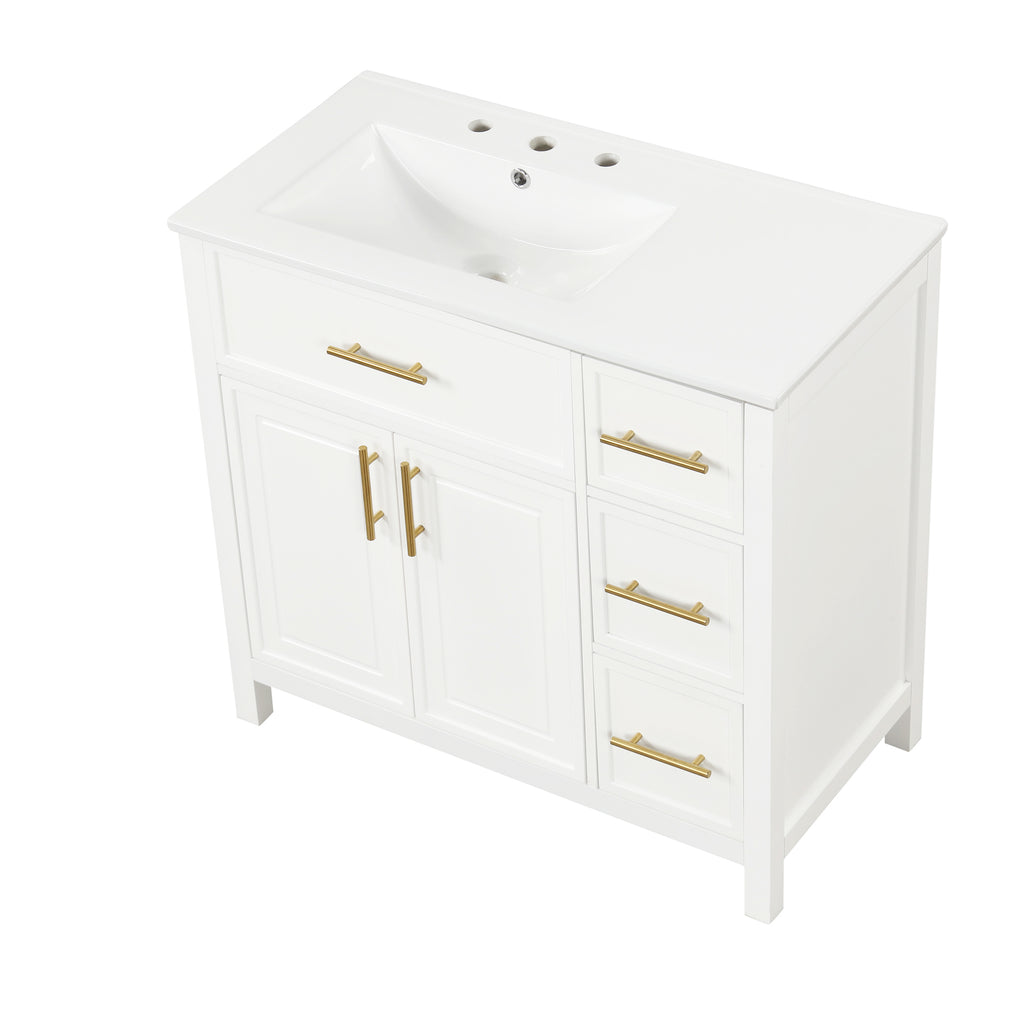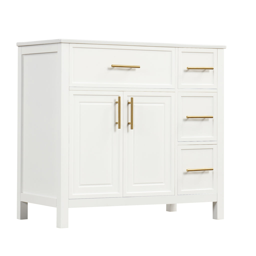 - Design & Detail: The groove line design on this vanity cabinet increases elegance to your room. Gold handles, stainless steel door hinges and slide rails comfort your daily using experience.