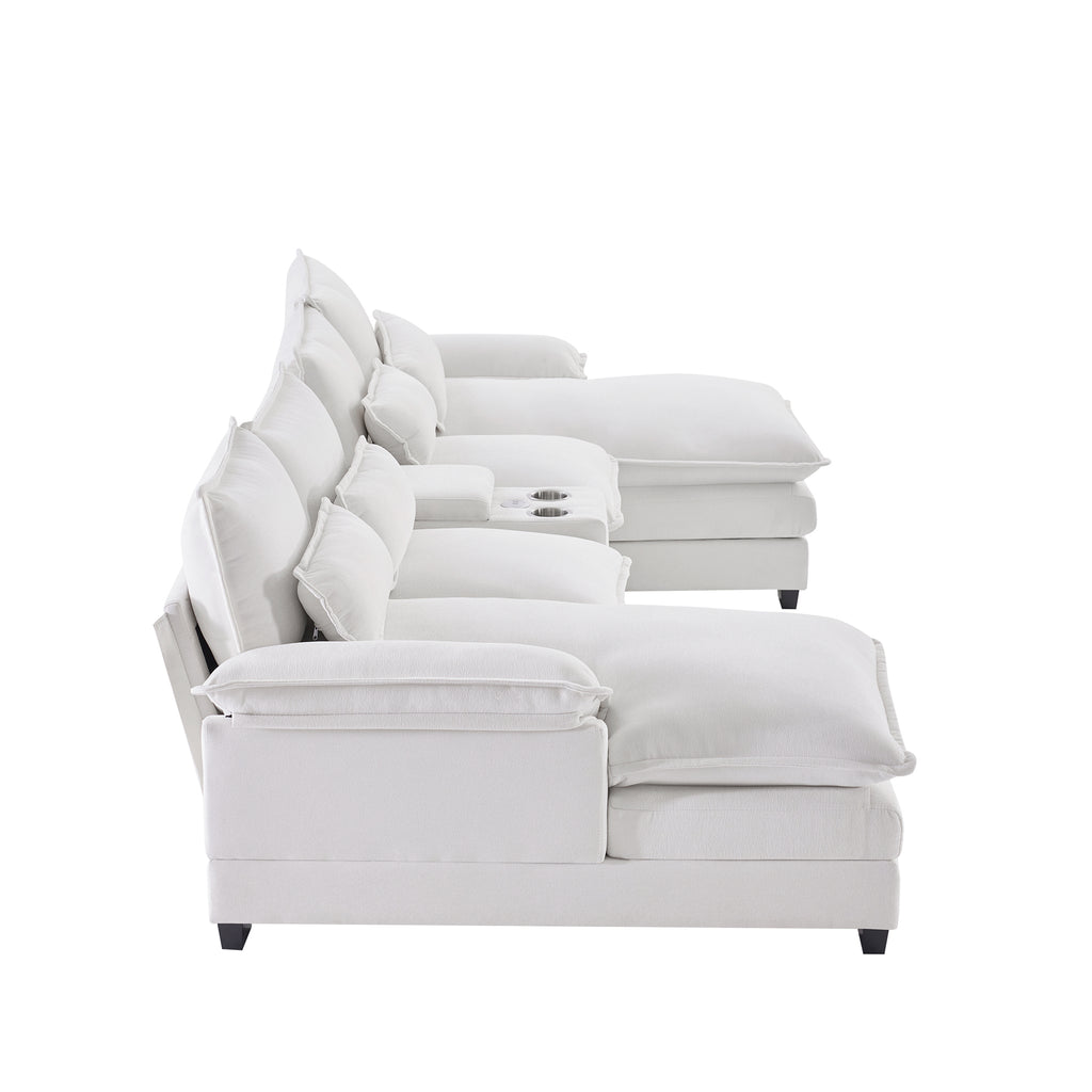 This modern sectional sofa has a classic design that will never go out of style. The upholstery and sleek lines blend perfectly to create a harmonious appearance that can suit any decor style and enhance your space. It also has storage space, cup holders and USB ports for convenience.