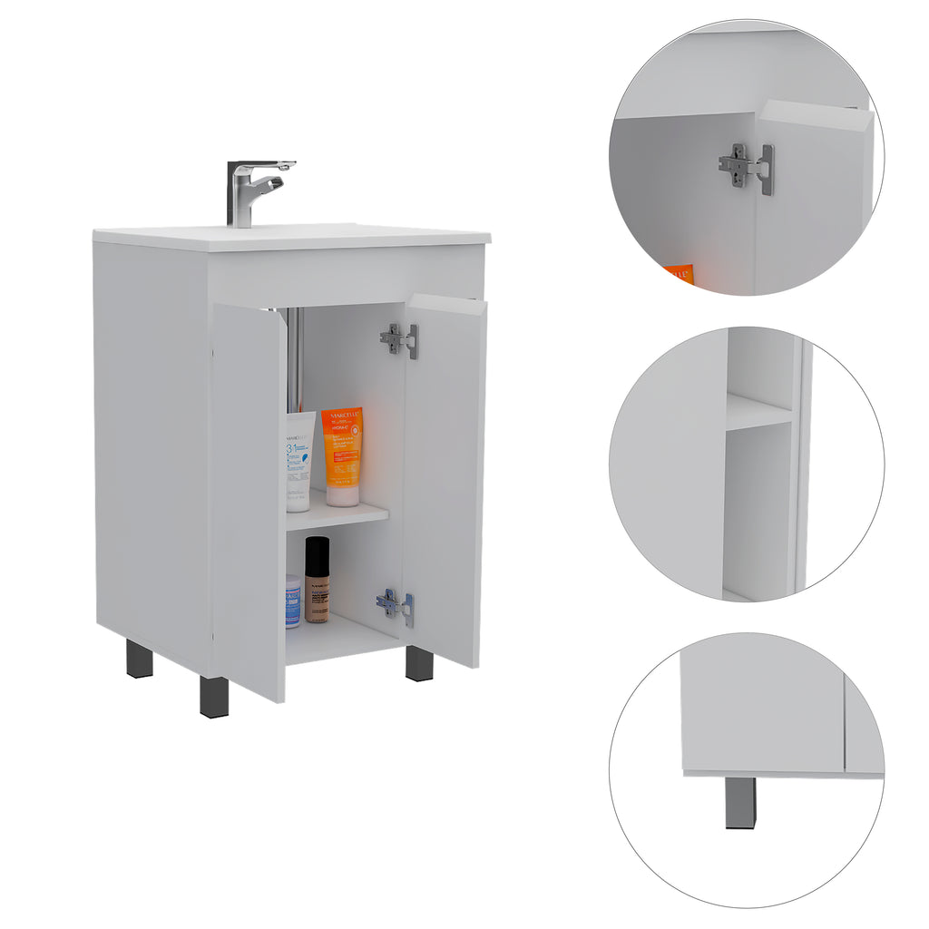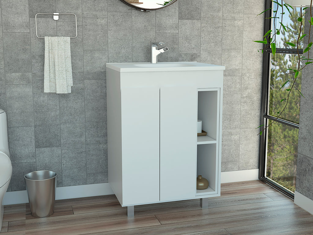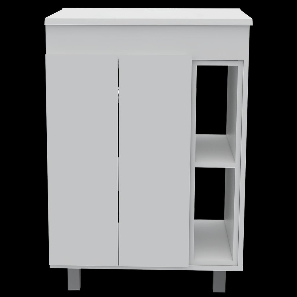 Freestanding vanities combine style and functionality with their versatile design, featuring two shelves ideal for displaying or storing items such as books and decor. The classic rectangular shape and white finish enhance any space, offering a clean, bright look that seamlessly complements various interior designs.