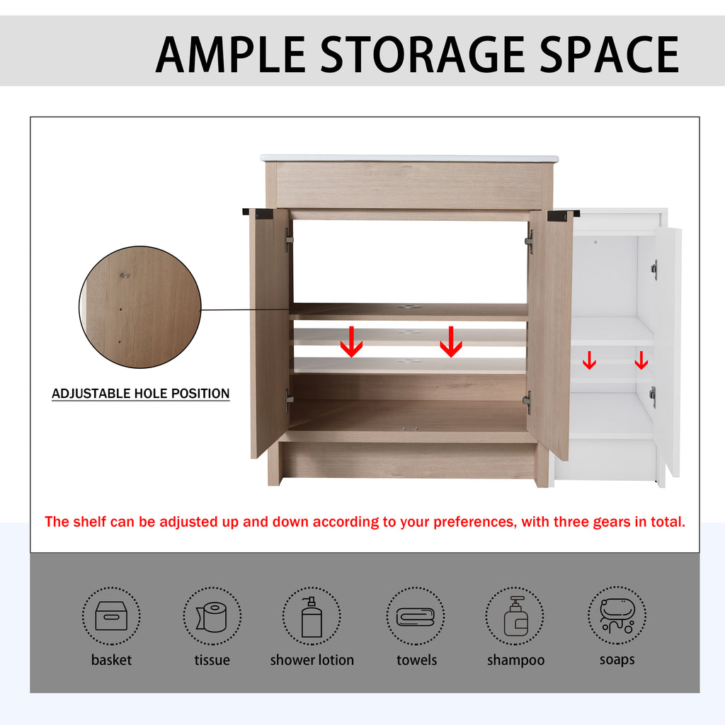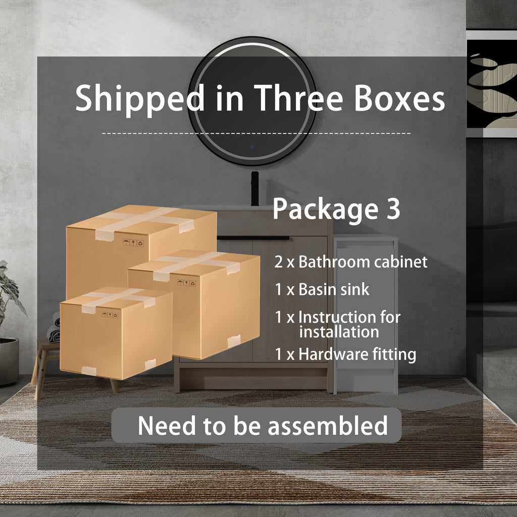 | Package includes | -1x Vanity Cabinet; -1x Ceramic Basin; -1x Storage Cabinets; -2x Metal Handle; Parts Package |