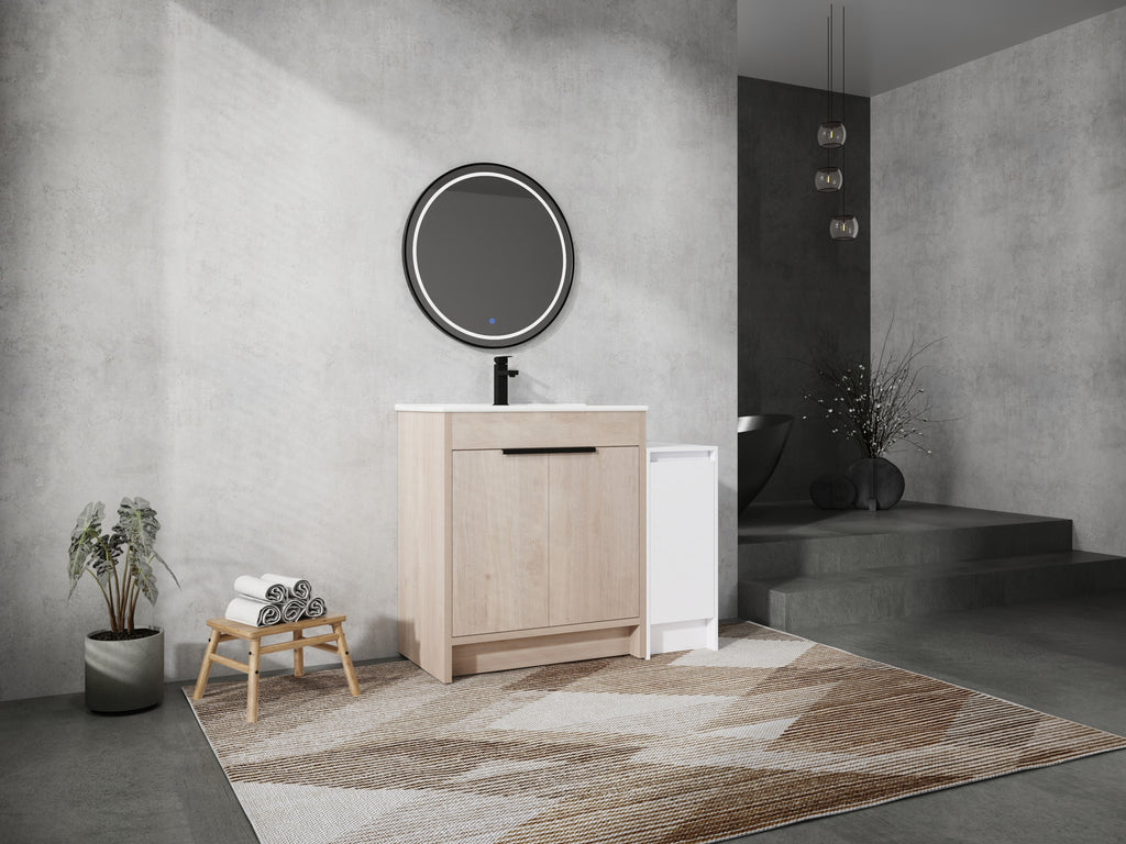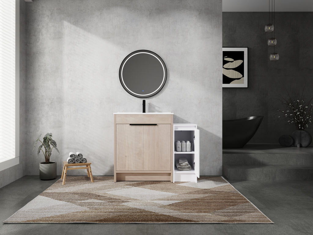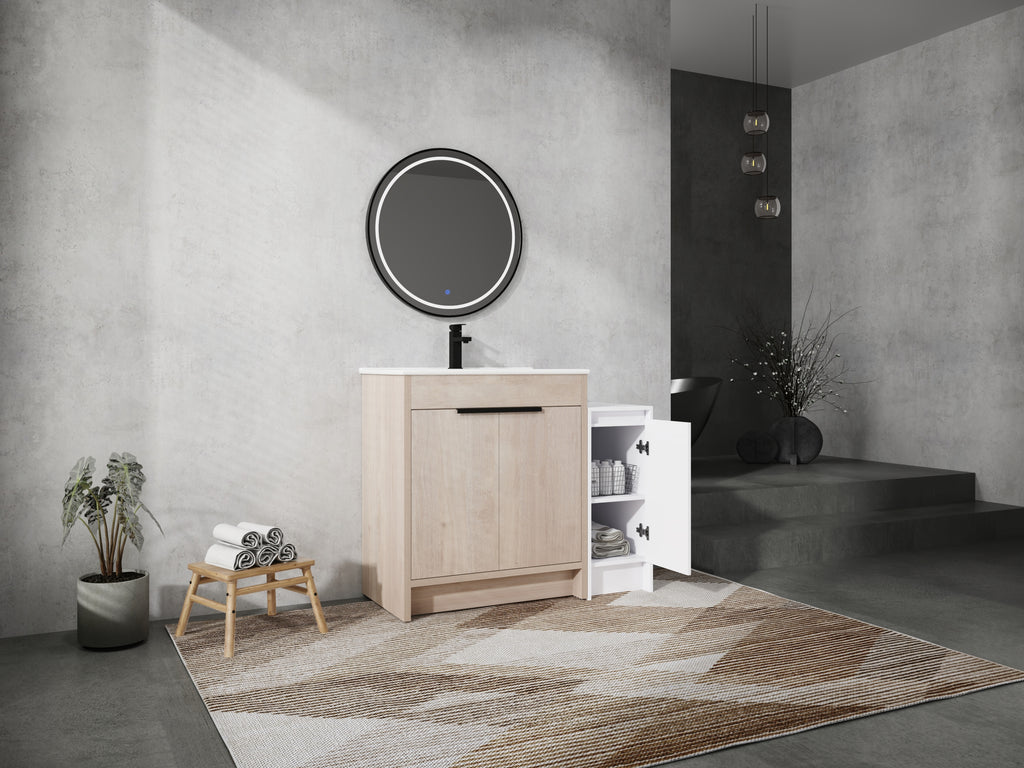 - Bring luxury to your bathroom with our contemporary bathroom vanity. Store all your essentials with ease in the ample bottom storage.