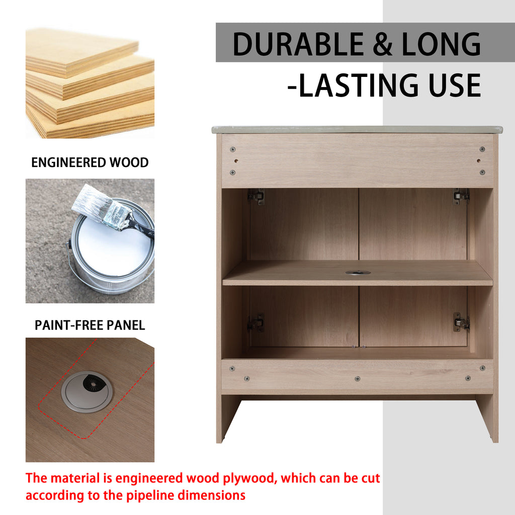 Vanity Base is made of high quality plywood that surface material used 'Scratch & Water-Resistant' melamine, which is designed to not only withstand threats of moisture and humidity but also easy to clean and maintain.