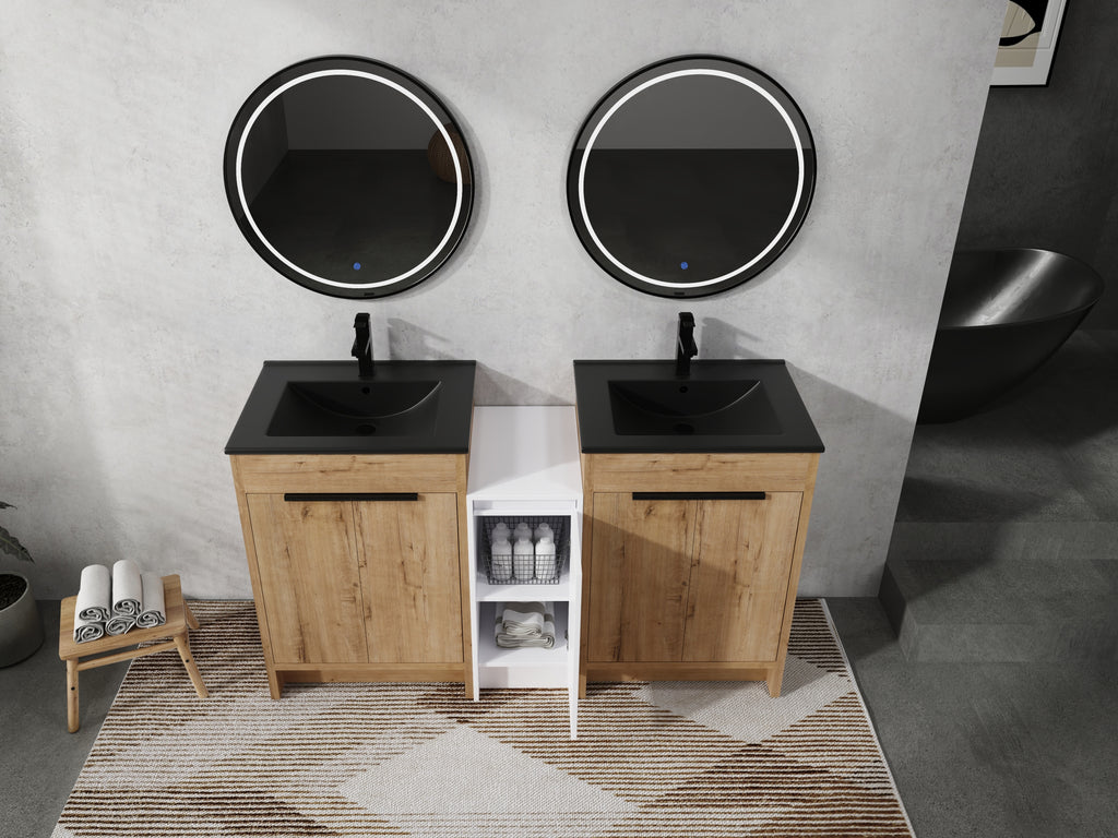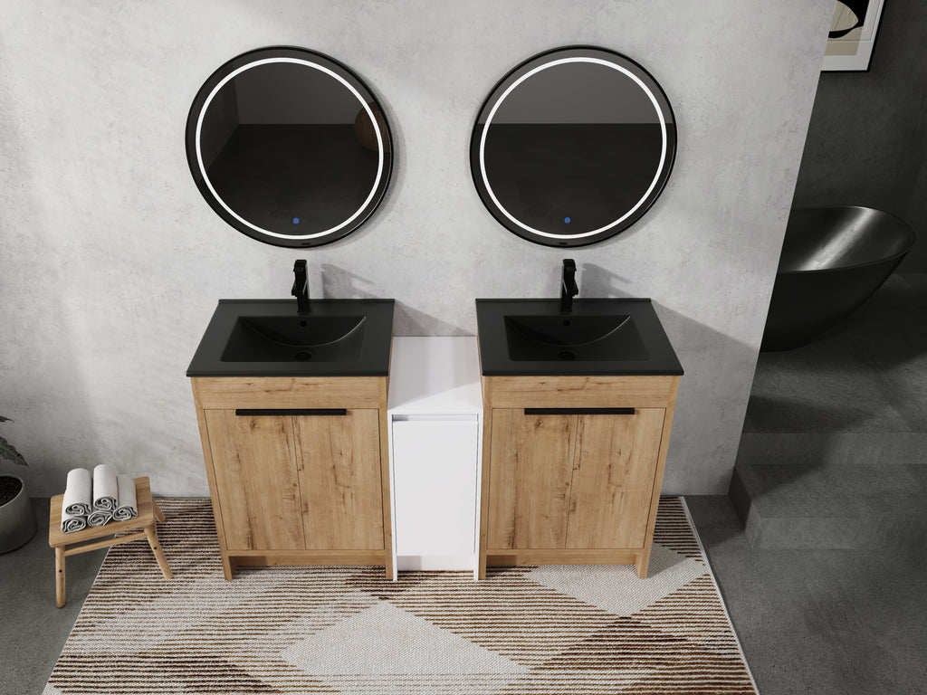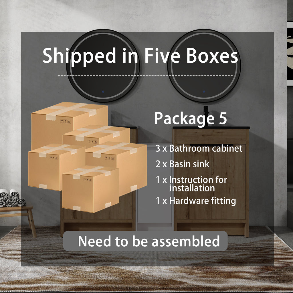 | Package includes | -2x Vanity Cabinet; -2x Black Ceramic Basin; -1x Storage Cabinets; -4x Metal Handle; Parts Package |