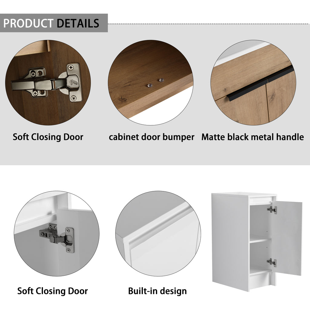This freestanding bathroom combination cabinet not only boasts strong functionality but also incorporates a modern minimalist design, seamlessly blending with the overall decorative style of the bathroom. The integrated design of bathroom cabinet and basin makes the product more concise and elegant. The two vanity of the bathroom and the storage cabinet are both equipped with adjustable shelves, which can provide classified placement of daily necessities for the bathroom. The additional combination of independent small storage cabinets provides a lot of extra space for the bathroom.
