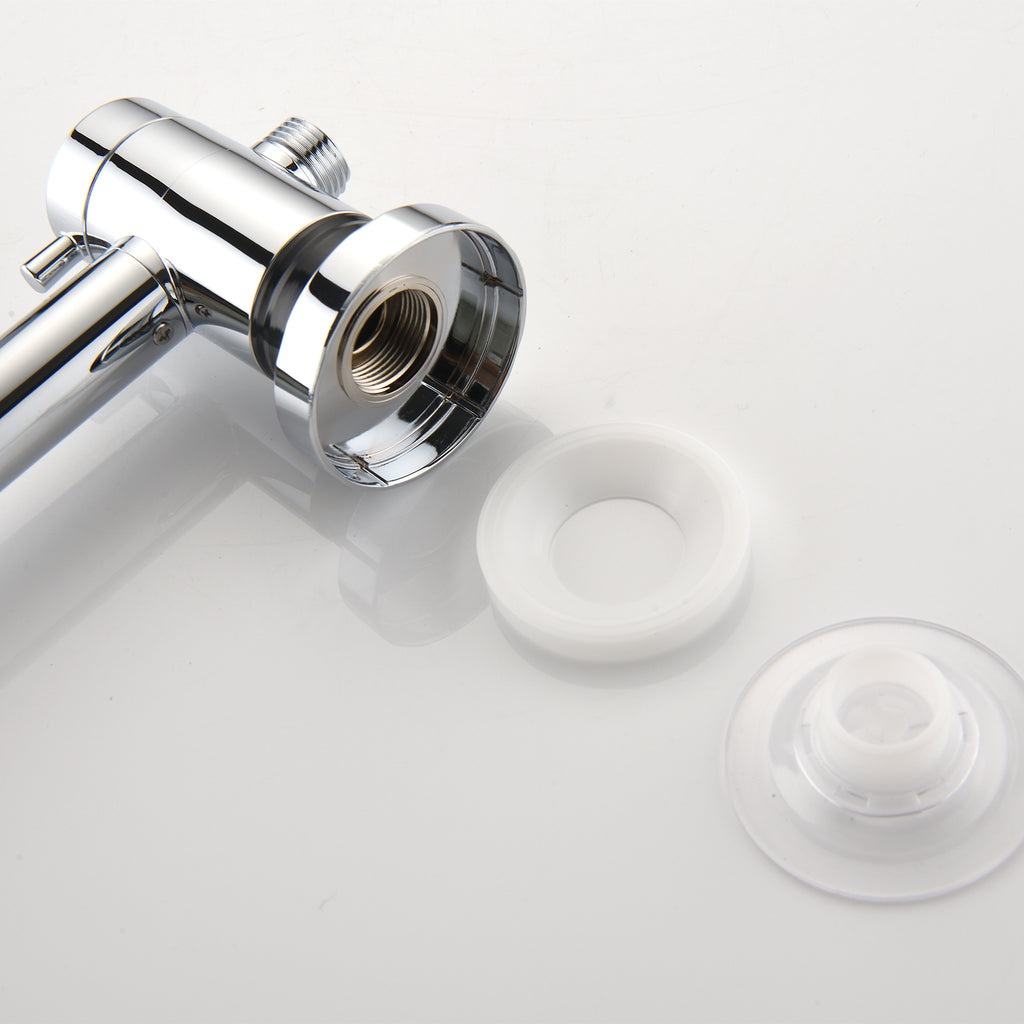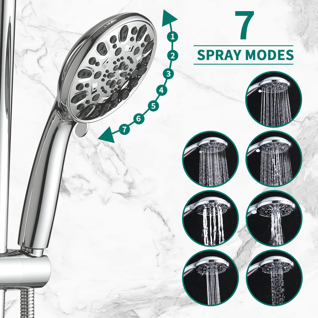 - 26' drillless stainless steel sliding rod assembly, equipped with 5-inch plastic ABS shower head, manual shower and low water level tee diverter, easy to operate.