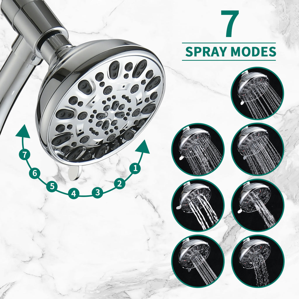 - It has advanced high-pressure design and cleaning nozzle settings, including overhead 7 function rainfall, dynamic rainfall, pulse massage, moisturizing fog, rain / fog, rain / massage and water-saving pause mode.