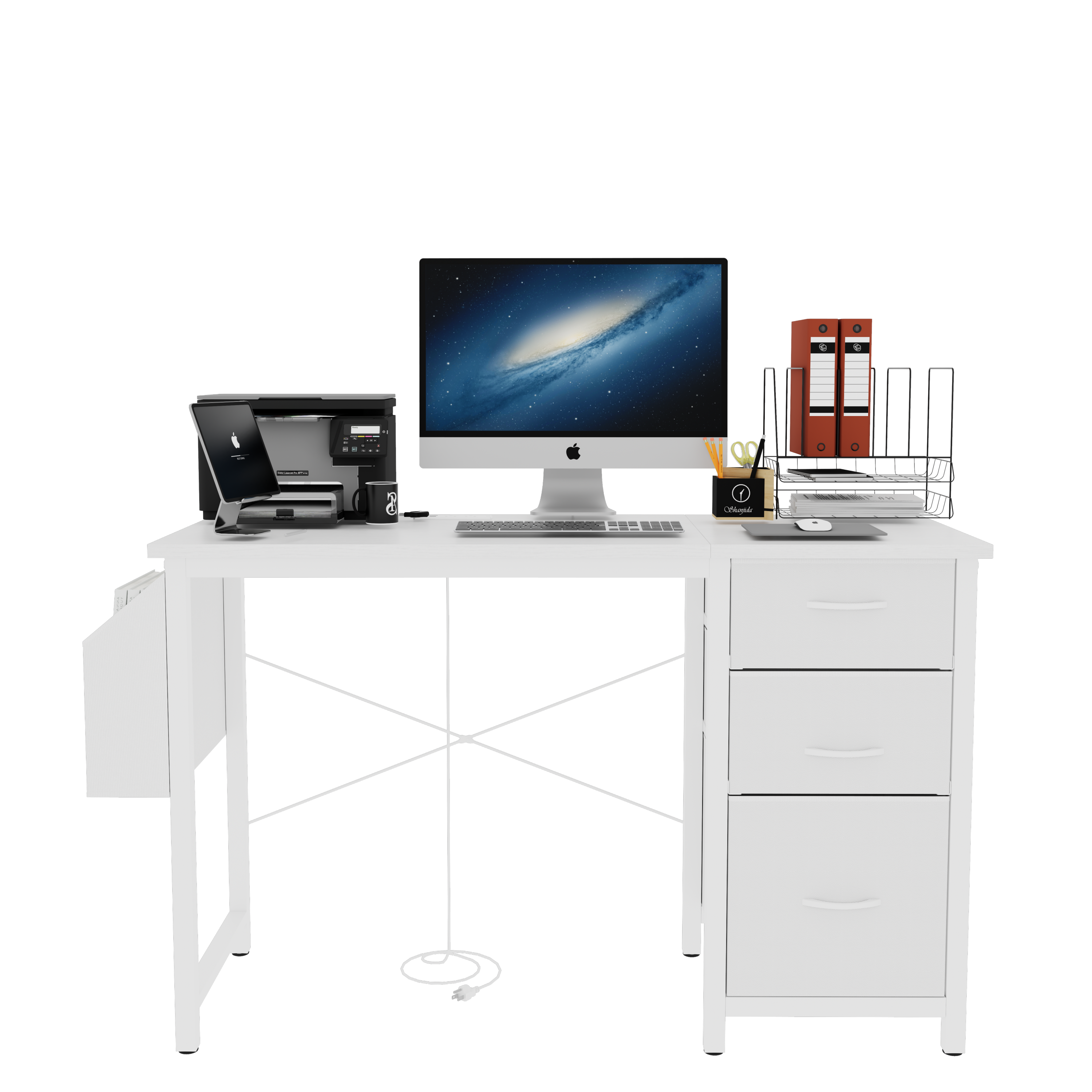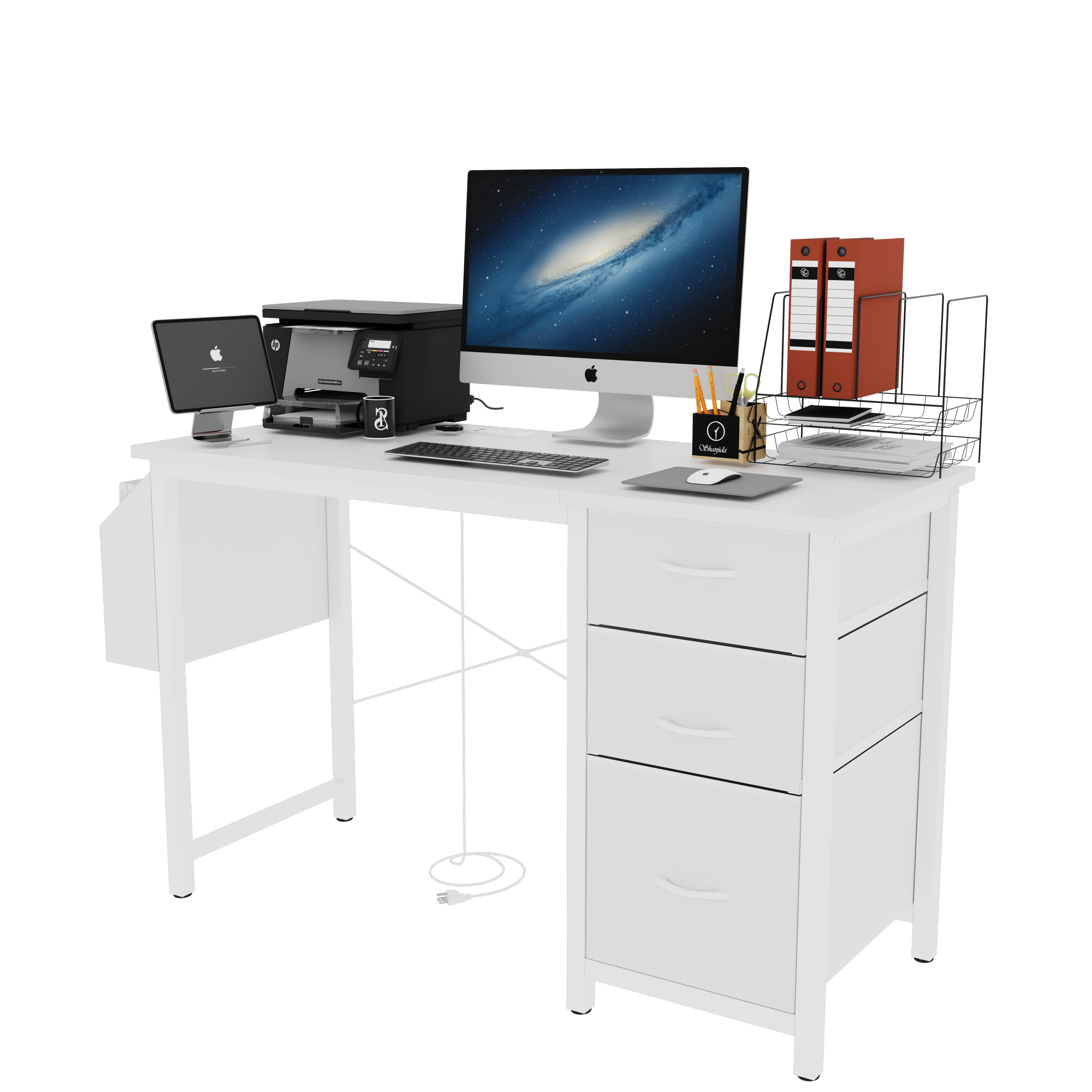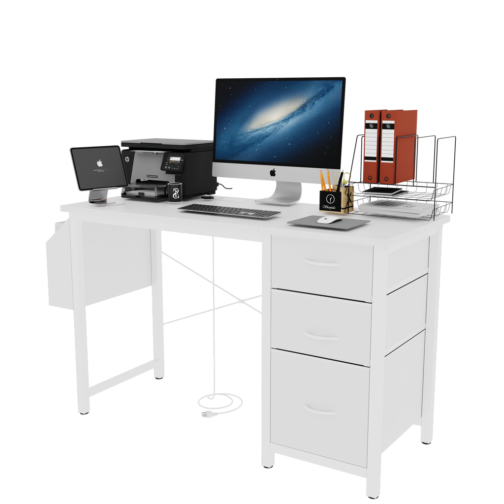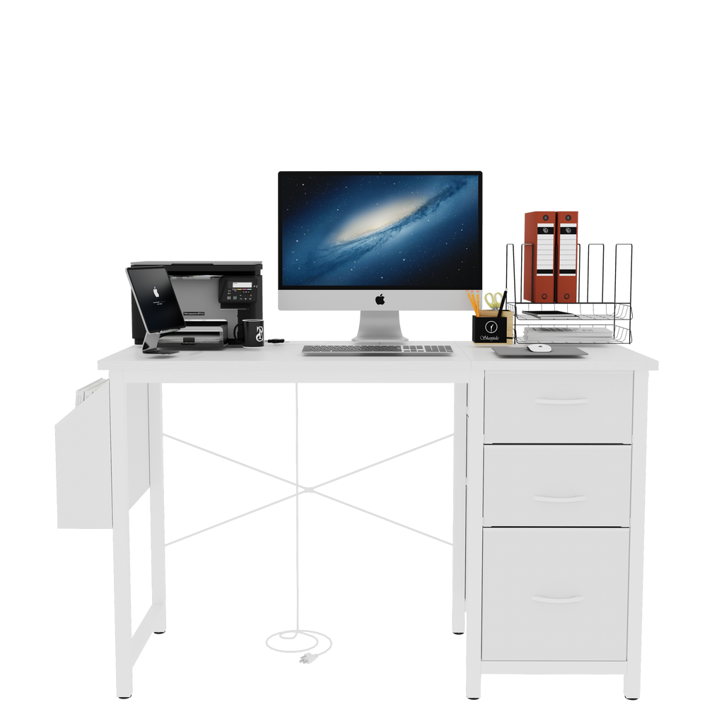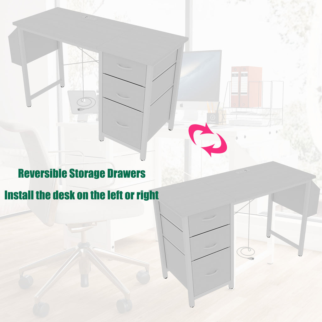 - [Adjustable and Reversible Computer Desk]: The cabinet with drawers and side pocket can be installed on the left or right side according to your preferences.