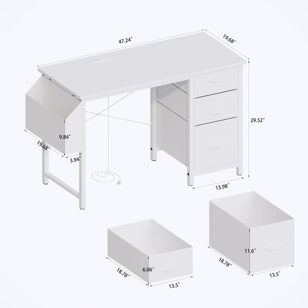 - [3 Fabric Drawers and Extra Large Side Pocket]: Featuring 3 foldable and easy-to-pull fabric drawers (the drawer base is made of 5mm board for sturdy load-bearing), it offers ample storage space for your daily needs. Perfectly organize and store your documents, stationery, books, cosmetics, and personal items. Drawer dimensions: 2pcs at 18.8'D * 13.5'W * 6.1'H, and 1pc at 18.8'D * 13.5'W * 12'H. Side pocket dimensions: 19'D * 12.2'W * 6.1'H.