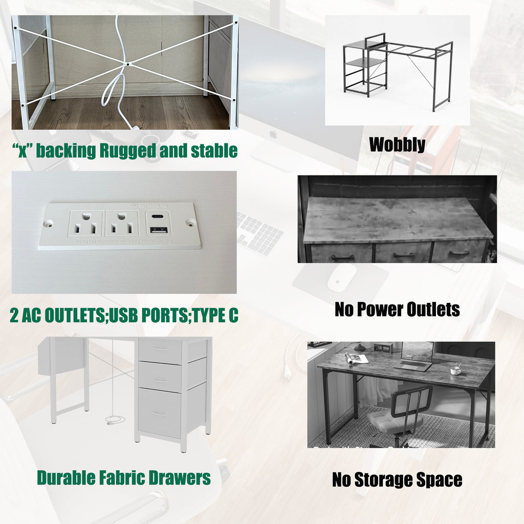 - [Multi-Functional Hidden Power Outlet Workbench]: Our workbench is equipped with 2 standard outlets, 1 USB port, and 1 Type-C port. Whether you need to charge your phone, power gaming devices, or connect other electronics, it provides great convenience for your busy work and vibrant life. Keep your workspace neat and organized, avoiding messy cables.