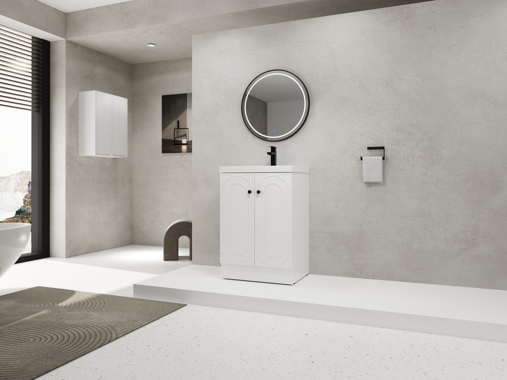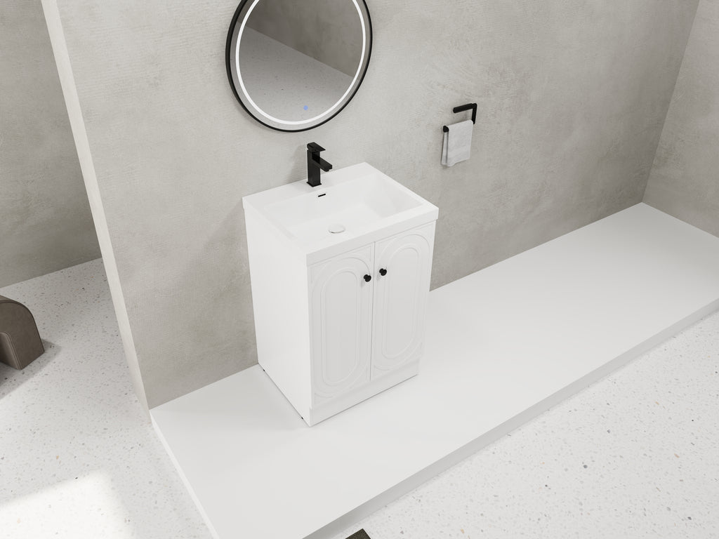 Our design is derived from life, close to reality, has a bright modern style, and is ergonomic. The bathroom cabinet and basin integral design make the product more concise and easy. The bathroom cabinet has its own adjustable shelves inside, providing a lot of extra space for the bathroom.