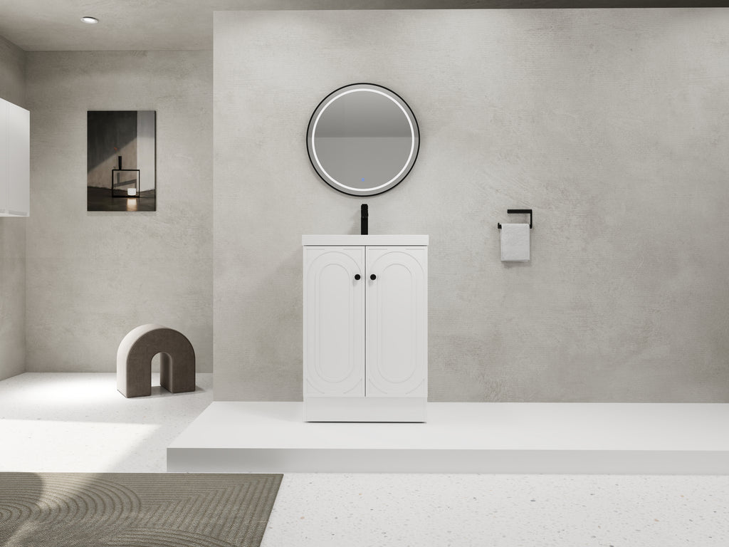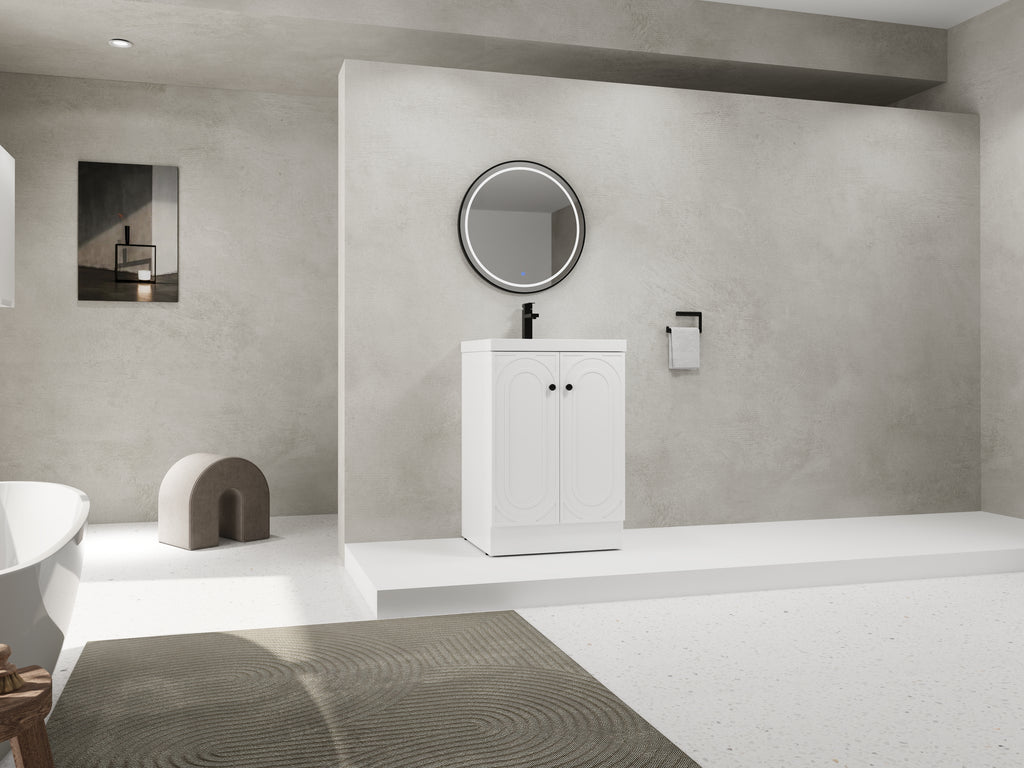 - Bring luxury to your bathroom with our contemporary bathroom vanity. Store all your essentials with ease in the ample bottom storage.
